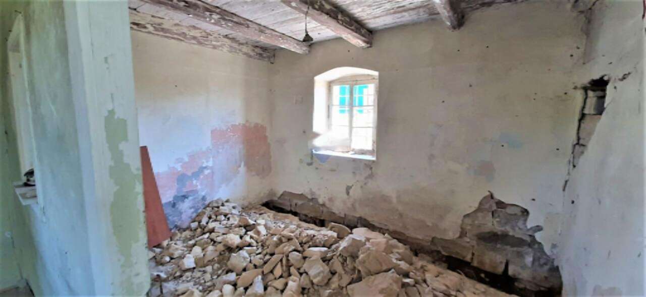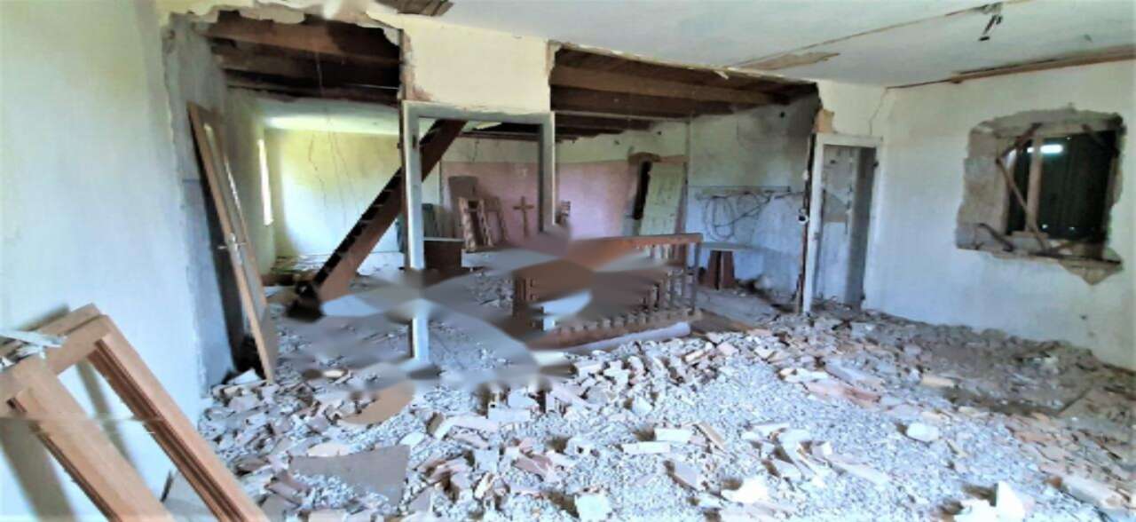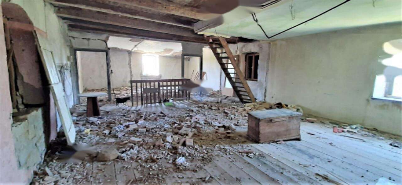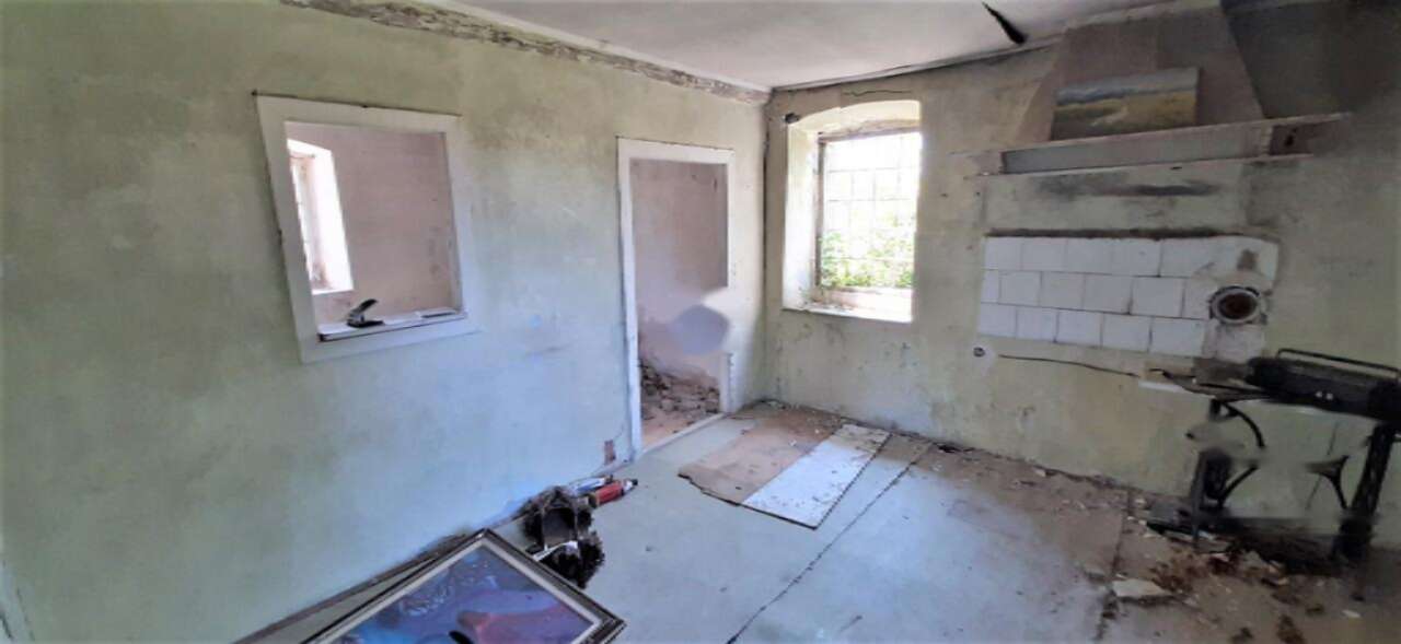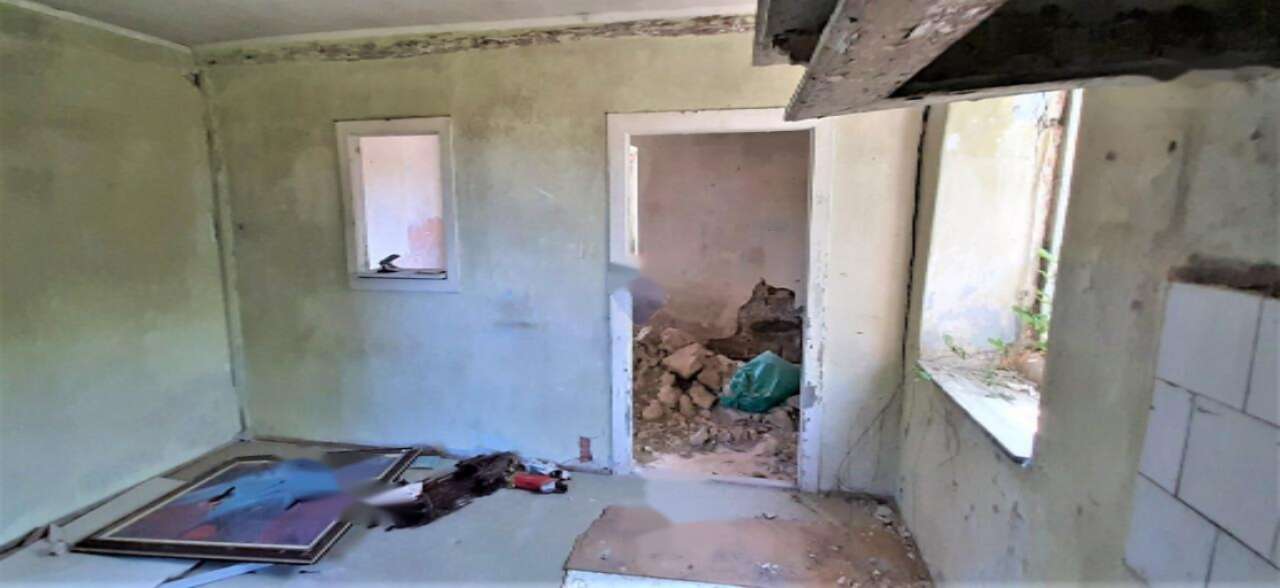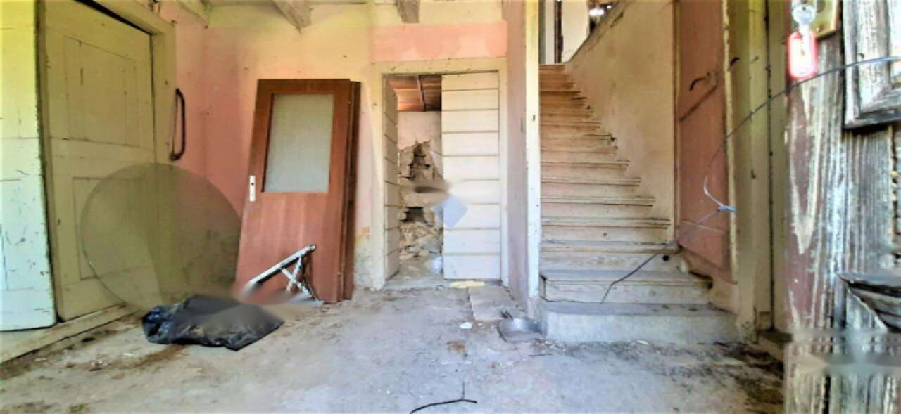 Двухэтажный дом находится на северо-восточной границе участка у общественной дороги. Будучи построенным в 1890 году с последней крупной реконструкцией крыши в 1999 году, дом требует капитального ремонта и на данный момент не пригоден для проживания. Подключены водопровод, электричество и оптика, а канализация представлена септиком. Конструкция выполнена из камня с деревянными перекрытиями.