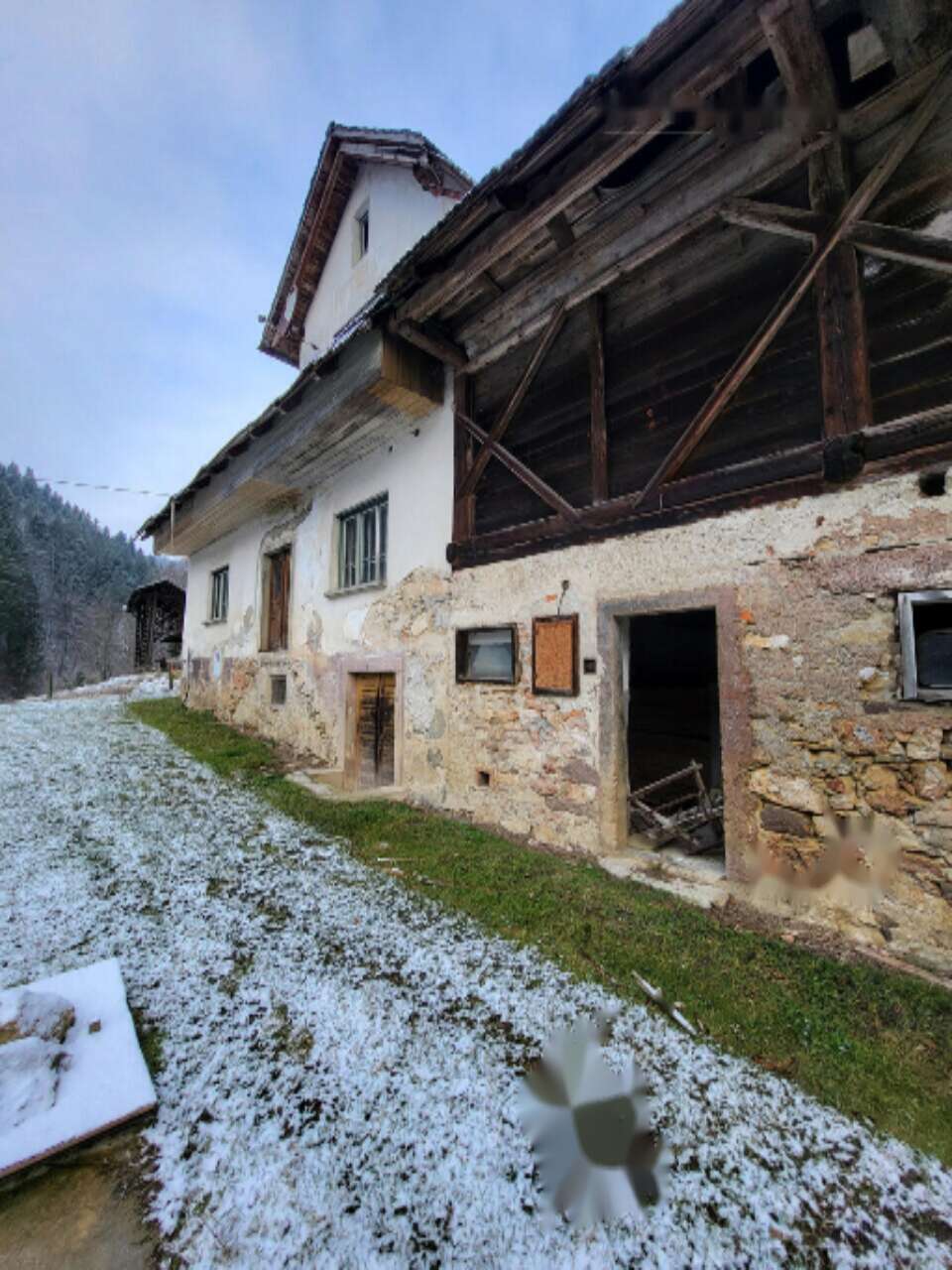 На продажу выставлен сельскохозяйственный участок площадью 48 571 м², расположенный в тихом месте с солнечными видами. Половина земли покрыта лесами. На участке находится дом, который нуждается в реконструкции или может стать основой для нового строительства. Окружающая дом территория ровная, в других местах участок имеет уклон. Площадь основного строения, включая дом и прилегающие строения, составляет около 300 м². Также рядом с домом есть деревянный навес.