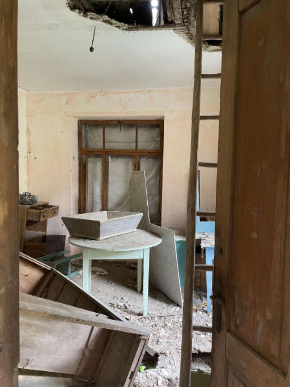 Крыша была обновлена в 80-х годах, но отсутствие облицовки возле дымоходов со временем вызвало разрушение её части и протечки в задних помещениях. Несмотря на открытость строения внешним факторам, его выгодное положение, украшаемое видом на живописные холмы, такие как Родица, делает объект привлекательным для инвестиций.