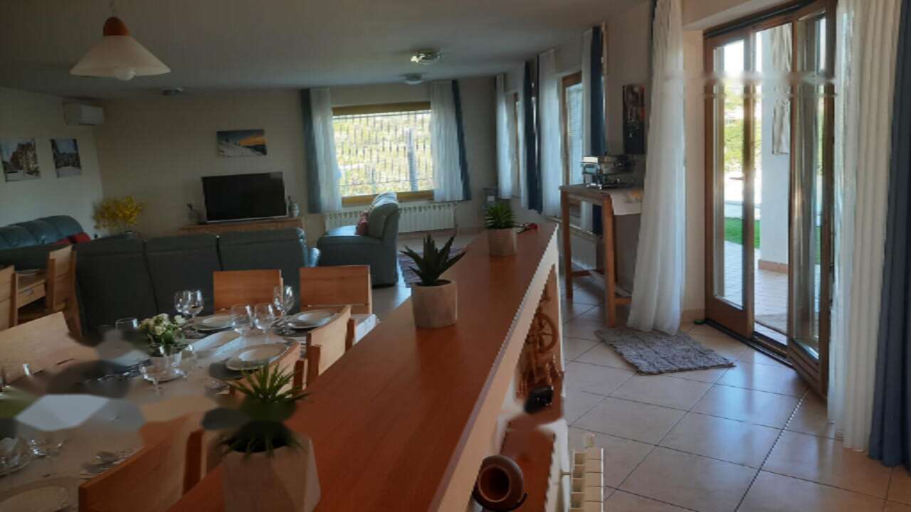 Технические удобства включают современную систему отопления, оснащённую тепловым насосом, радиаторами и кондиционированием воздуха, обеспечивая комфортный климат круглый год. Дом также оборудован домофоном, системой сигнализации и возможностью подключения к оптическому интернету для дополнительного удобства и безопасности. В дополнение, в доме имеется отдельный туалет и кладовая для хранения.