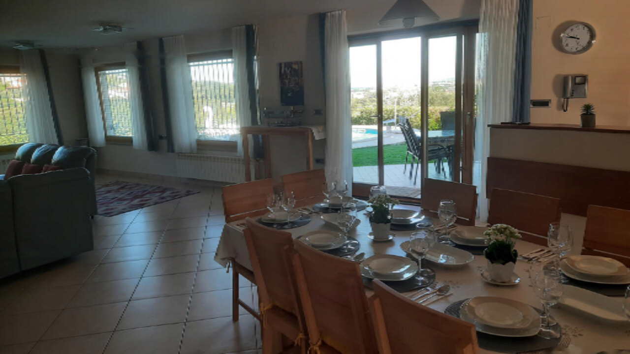 В числе главных достоинств здания - шесть уютных спален и пять ванных комнат, что особенно подходит для многочисленных семей. Кроме них, имеется отдельный санитарный узел и кладовая. Закрытая территория располагает личным бассейном, обширной террасой и балконом, создающими идеальные условия для отдыха на свежем воздухе. Для автомобилей предусмотрено парковочное место, хорошо адаптированное для людей с ограничениями по здоровью.