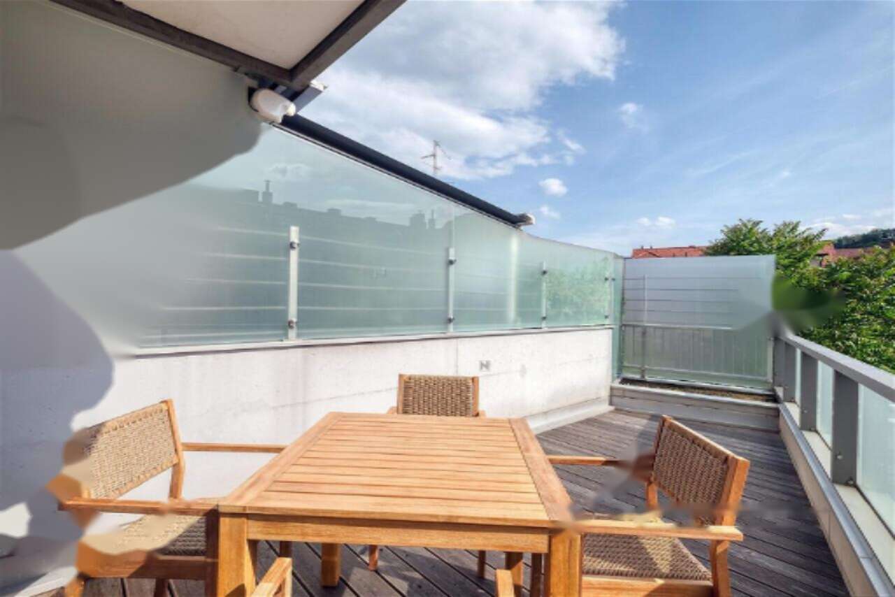 На продажу выставлена современная двухкомнатная квартира, располагающаяся в центре Любляны и занимающая площадь 76,9 м². Помещение находится на первом этаже аккуратного здания, возведенного в 2005 году, и привлекает внимание своей функциональной планировкой и великолепной террасой.