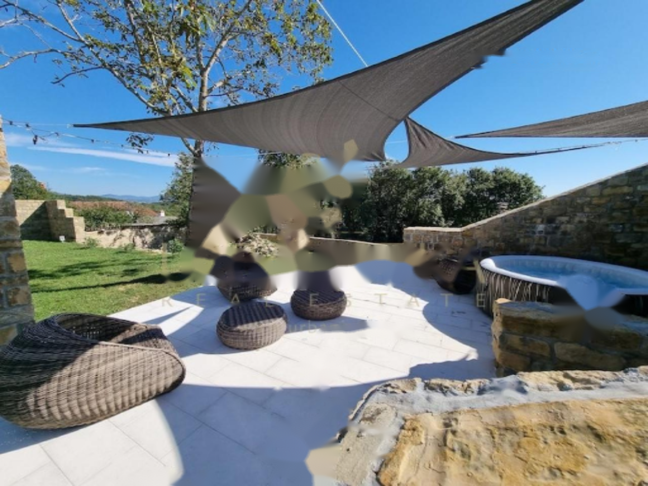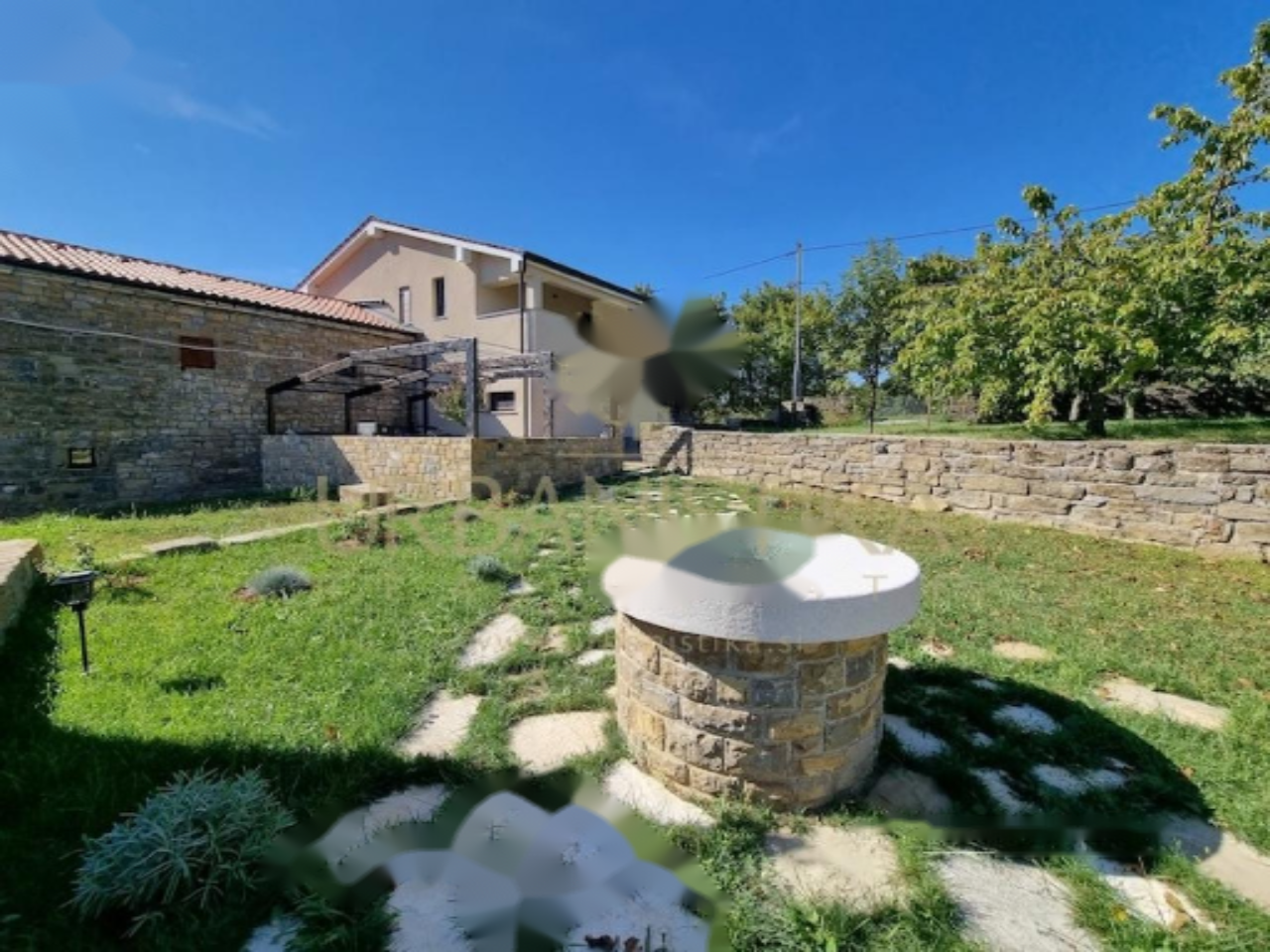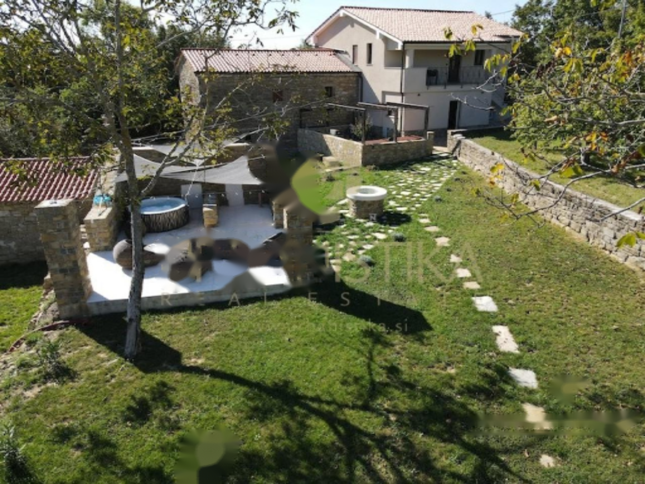 Второй дом сохраняет аутентичность старинной истрианской каменной архитектуры и предлагает просторное жилье на верхнем этаже. Нижний уровень включает зону для отдыха и здоровья с сохранением уникальных черт здания. Вокруг сооружения располагается уютный каменный двор, травяные газоны и зона отдыха с джакузи-бассейном, а также просторные парковочные места на 9 автомобилей.