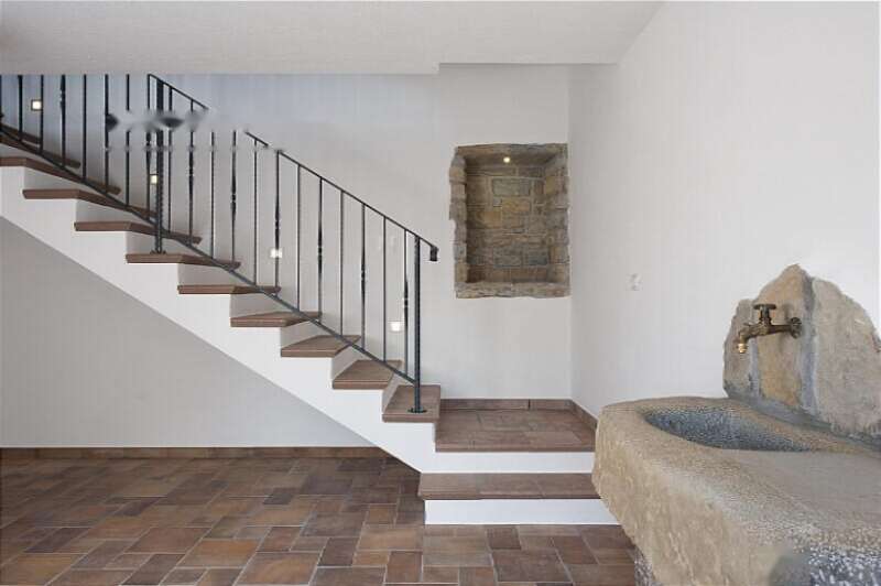 Главное жилое пространство включает первый уровень с просторной гостиной, обогреваемой камином, изысканной итальянской кухней и ванной комнатой. На втором уровне находятся две спальни, одна из которых оснащена индивидуальной ванной. Через отдельный вход можно попасть в апартаменты для персонала, включающие кухню, гостиную, ванную и спальню. Под ногами здесь расположены полы из натурального дуба и камня высшего сорта.