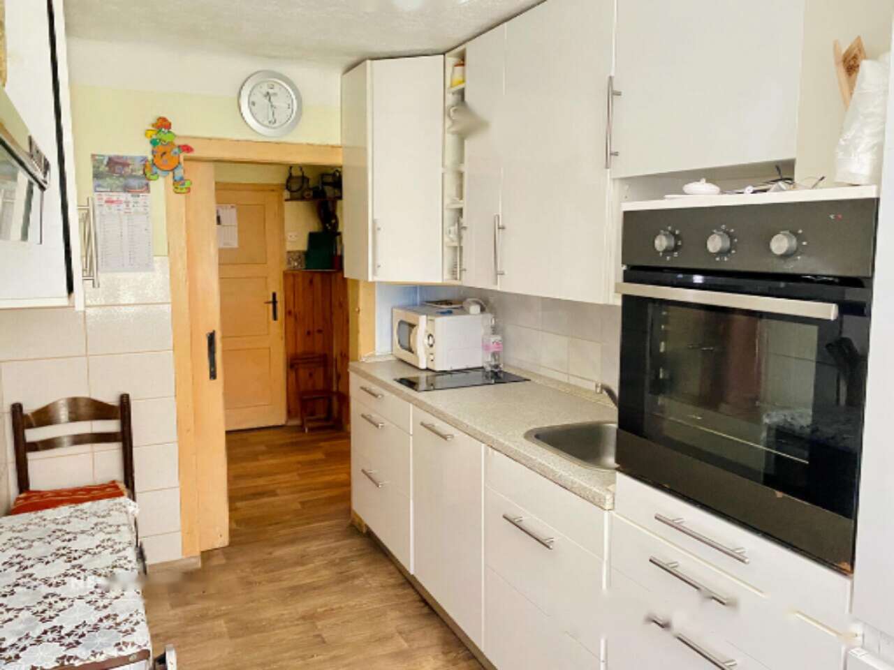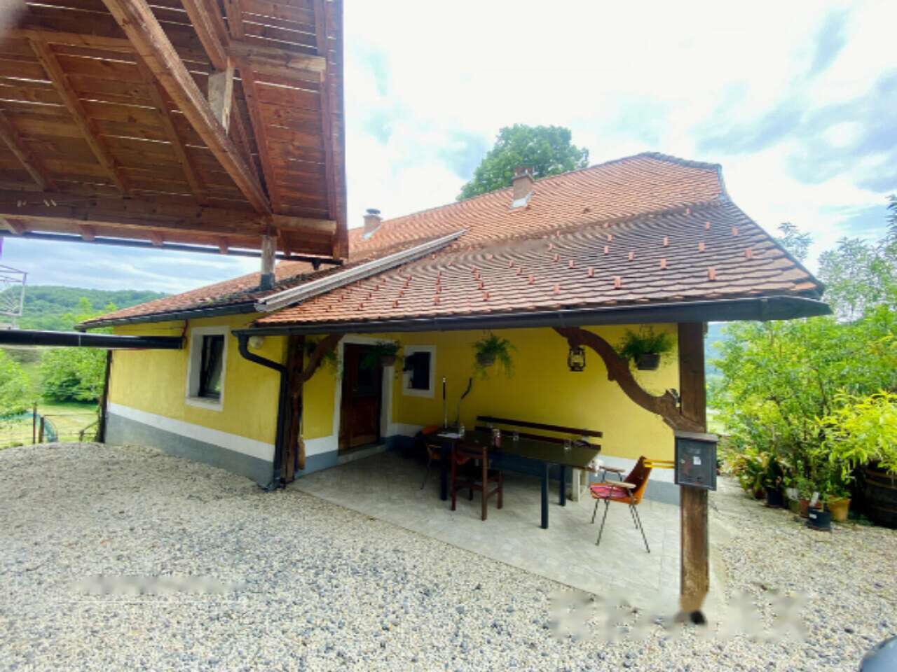 - Жилой дом площадью 276,7 м², возведенный в 1890 году и полностью модернизированный в 1990. Обновление кухни и столовой произошло в 2018 году, а замена окон, за исключением кухни и ванной, – в 2017. Здание имеет статус культурного наследия и включает традиционную черную кухню с керамической печью. Планировка включает коридор, ванную, кухню, столовую с печью и большим деревянным столом, две спальни и черную кухню с доступом на чердак. Дом оборудован подвальным помещением.