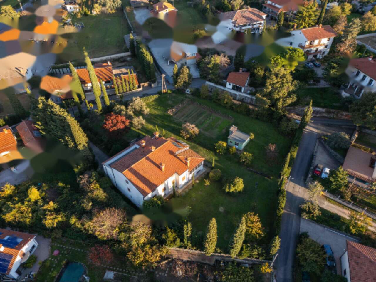 Участок украшает ботанический парк, в котором растут средиземноморские растения: пальмы, кипарисы, оливы, инжир, лаванда и олеандр. Возможно установить личный лифт, обустроить бассейн и организовать дополнительные парковочные места.