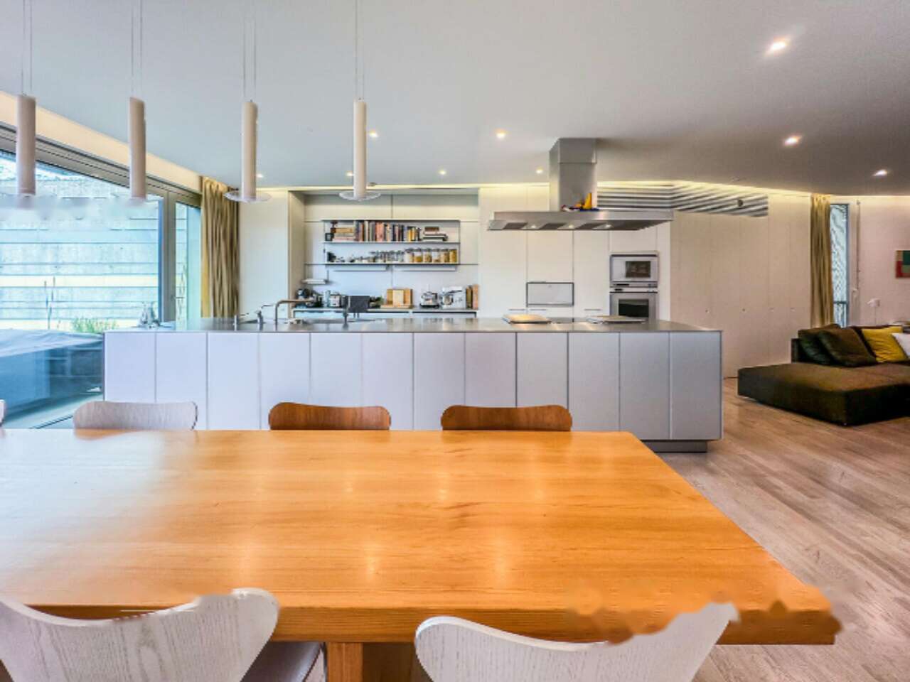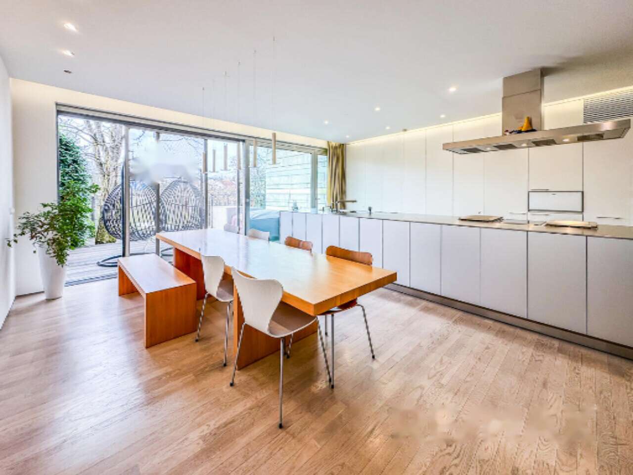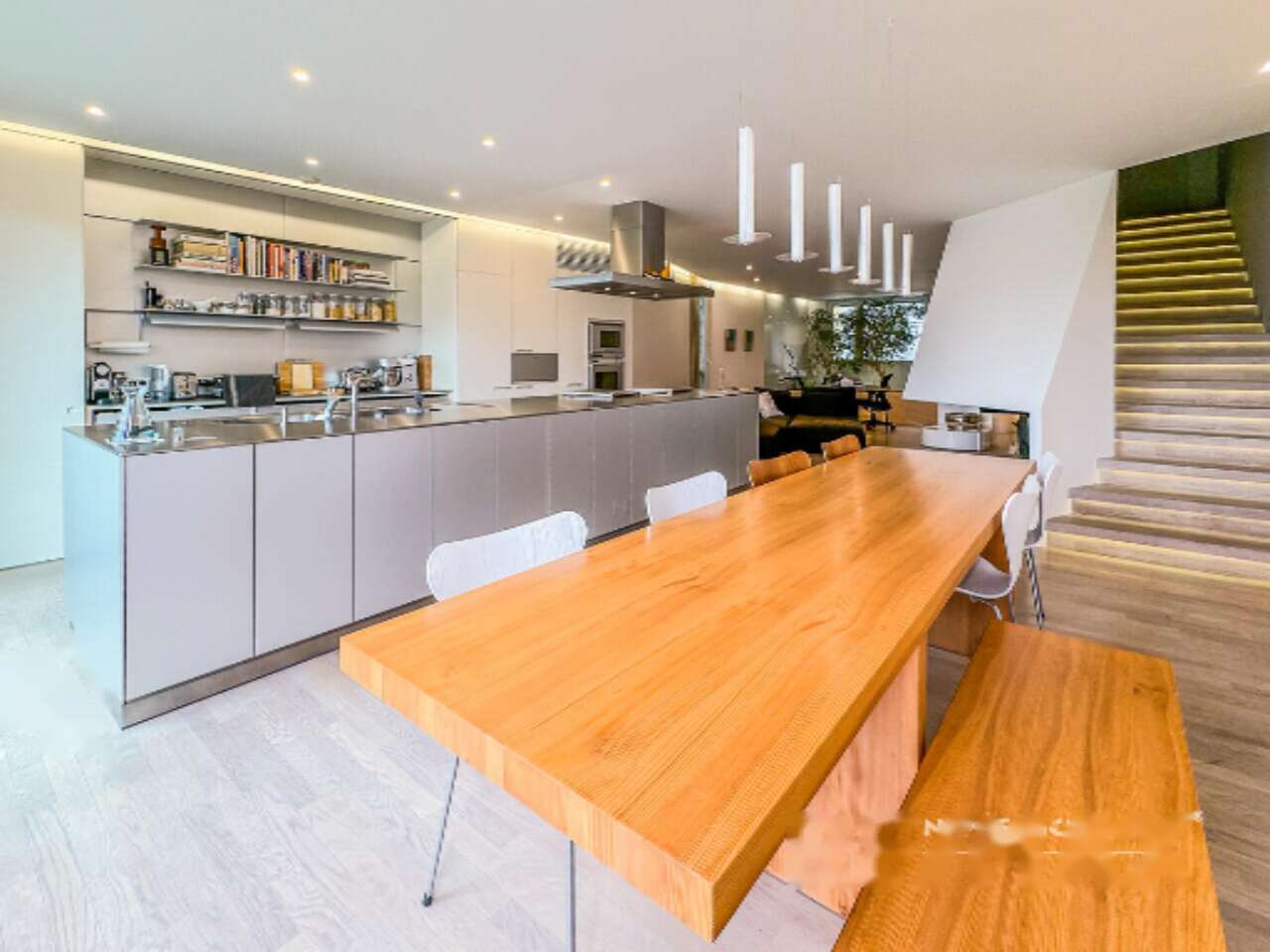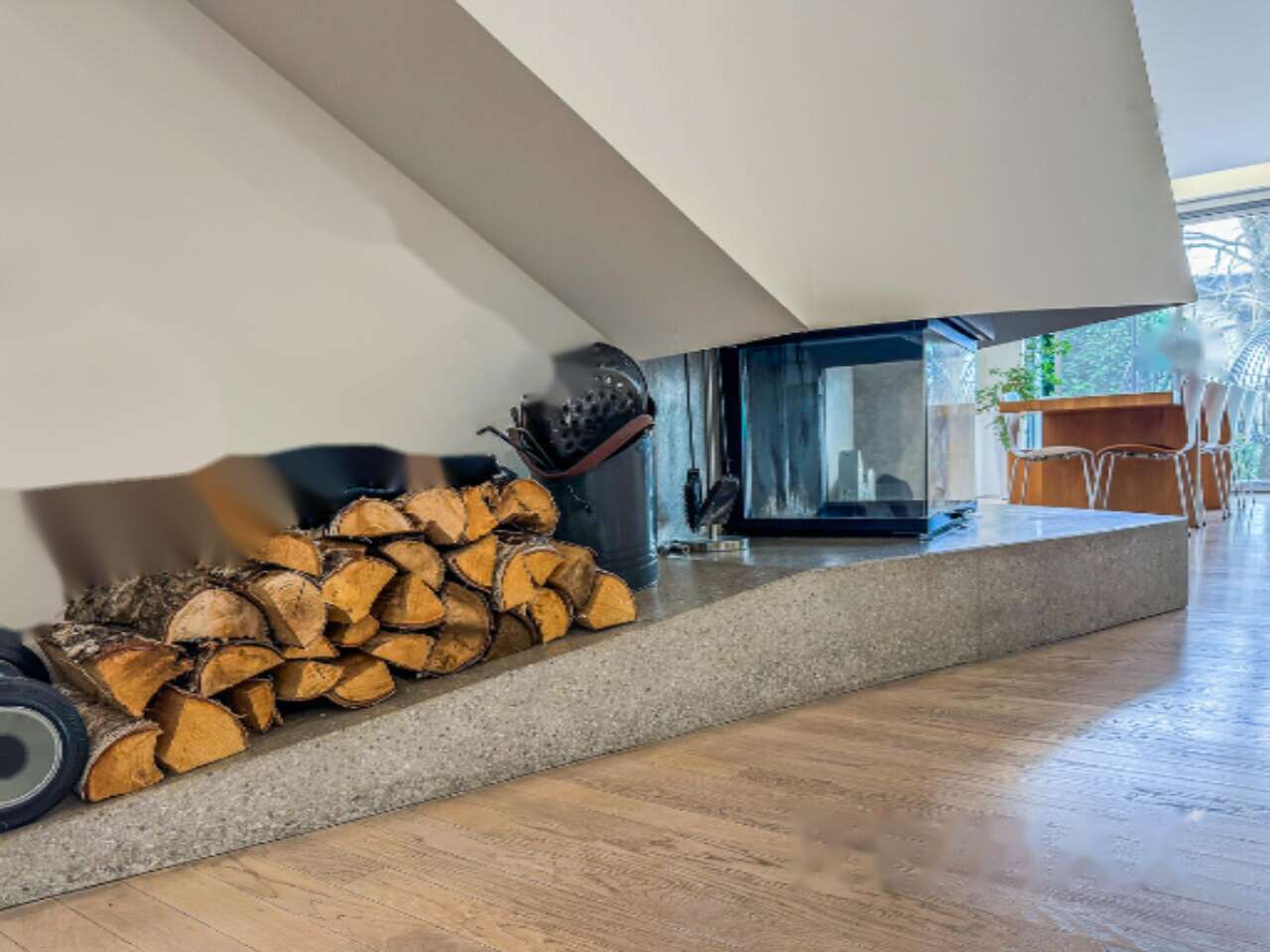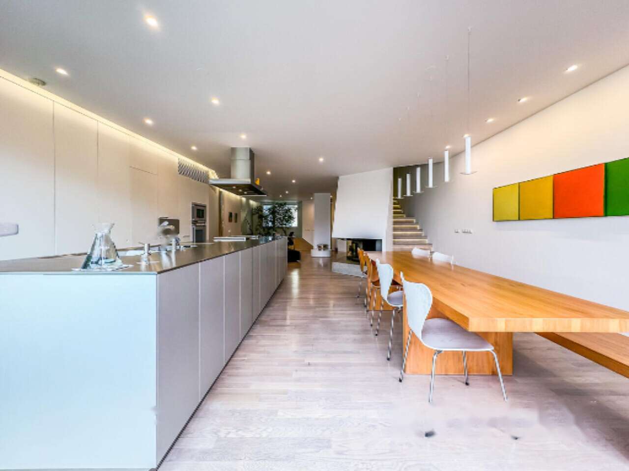 Главное помещение первого этажа — просторный дневной зал, соединенный с современной кухней, оснащенной первоклассной техникой. Здесь же расположен обеденный стол, где можно устроить семейные ужины или принимать гостей. Уютные вечера ждут вас у камина или на террасе, доступ на которую идет прямо из столовой зоны. На втором этаже находятся три спальни, включая основную с личной ванной и две дополнительные, между которыми расположена вторая ванная комната.