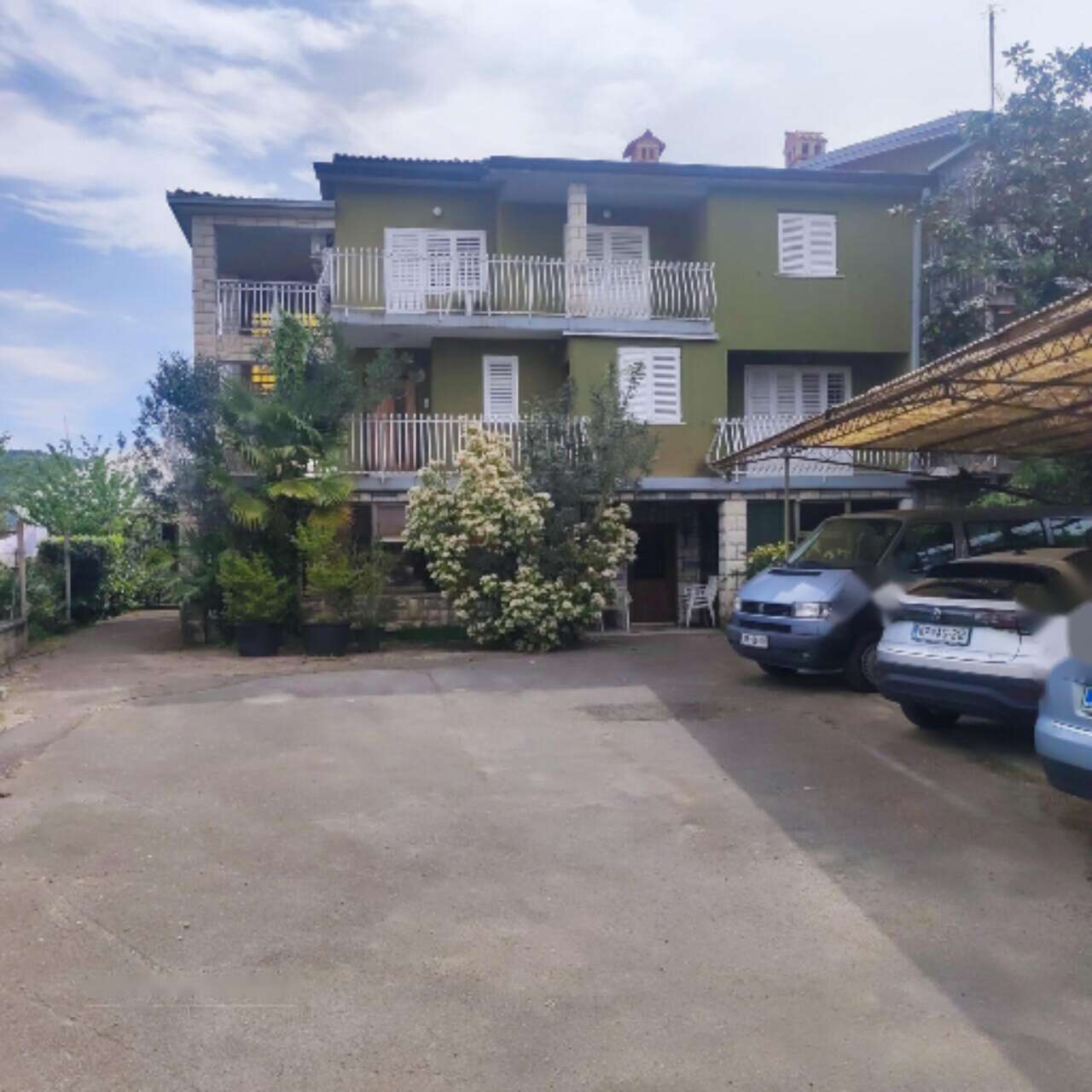 На территории имеется огороженный въездной двор с пятью крытыми парковочными местами и ухоженная зона за домом, ранее использовавшаяся как зимний сад. Все квартиры оборудованы кондиционерами и полностью готовы к использованию. Подключены все необходимые коммуникации для комфортного проживания. До моря всего 700 метров, а все важные городские объекты находятся совсем рядом.