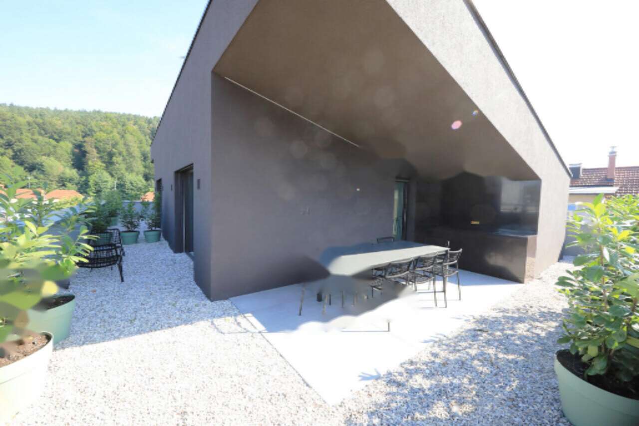 Современное и стильное здание в районе Вижмарье в Любляне предлагает исключительную возможность приобрести просторный пентхаус-дуплекс площадью 149 квадратных метров. Он расположен на первом из двух уровней, обеспечивая идеальные условия для комфортной жизни иностранных арендаторов, заключивших долгосрочный договор аренды.