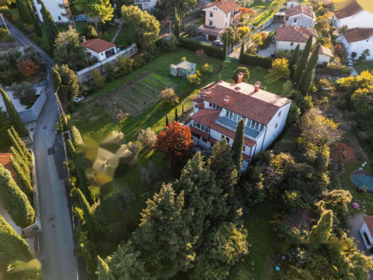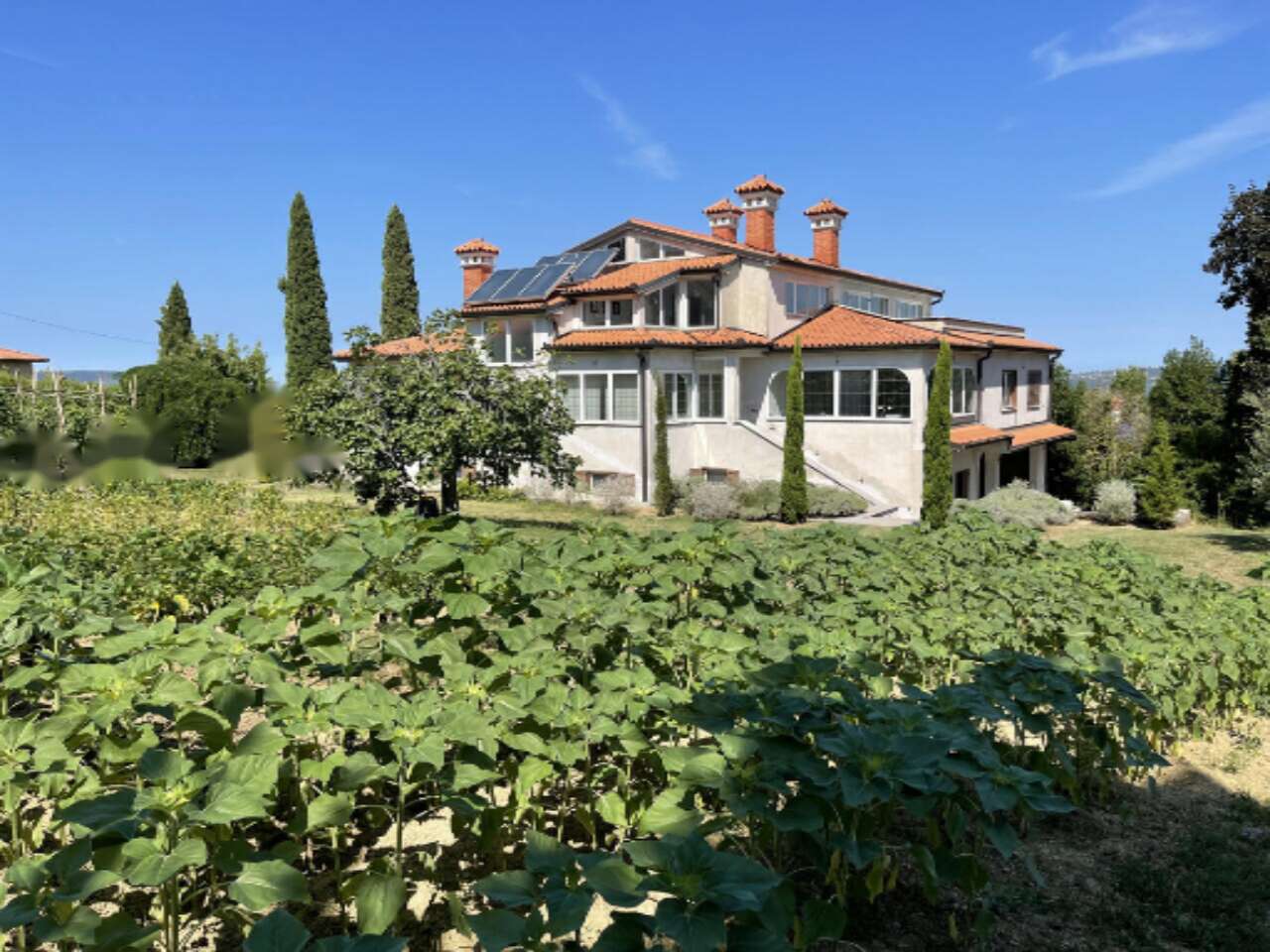 Участок в 2100 м² окружен кипарисами. На территории находится ботанический парк с пальмами, оливами, фигами и другими растениями Средиземноморья. На первом этаже площадью 285,40 м² расположены винный погреб, котельная, две ванные комнаты, прачечная и пять жилых помещений. Второй этаж, размером 281,56 м², включает в себя восемь комнат, прихожую и ванную комнату. Высокий чердак площадью 186,40 м² предоставляет пять дополнительных комнат и ванную.