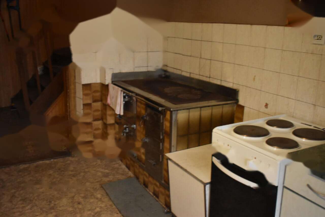 На первом высоком этаже имеются: прихожая, спальня, две детские комнаты, одна из которых имеет прямой выход на задний двор, коридор, ведущий на крытую террасу, кухня, а также ванная с туалетом и душевой кабиной. В наличии также кладовая. В 2017 году в доме проведена замена на новые двухслойные ПВХ окна с жалюзи и входные двери. За отопление отвечают радиаторы с использованием жидкого топлива, котельная размещена в подвале. Дополнительно есть возможность отапливать дом с помощью дров либо угля в встроенной кухонной печи.