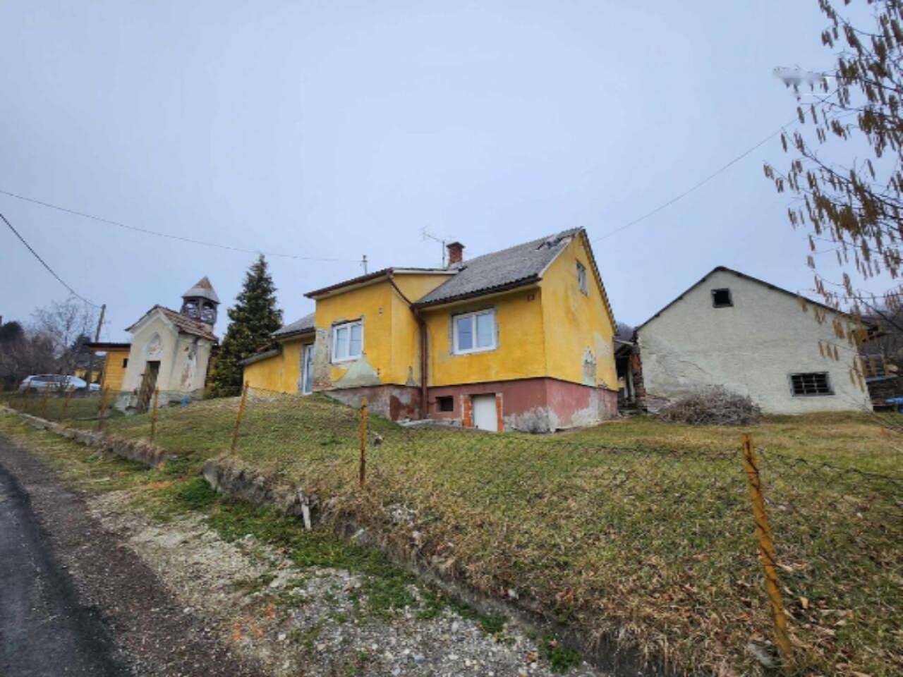 На территории также находятся три сооружения, включая сам дом и нуждающуюся в сносе хозяйственную постройку. Она окружена сельскохозяйственными участками. Земля обнесена забором и облагорожена, на ней растут фруктовые деревья и овощные культуры. Подведены все необходимые коммуникации - электричество и водоснабжение, а также установлена канализационная яма. К участку ведет широкая асфальтированная дорога с прямым выездом на главную трассу.