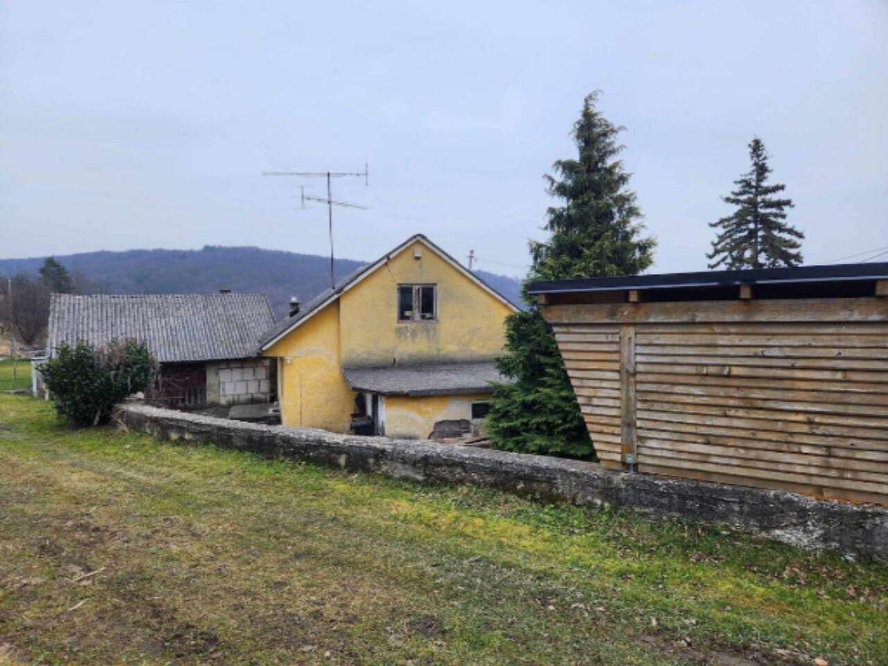 На продажу выставлен одноэтажный дом, построенный в 1959 году, площадью 87,4 м², расположенный на участке 548 м² в поселке Метава. Участок отличается солнечным размещением и частично используется для строений, частично - для сельского хозяйства. Дом нуждается в капитальном ремонте или демонтаже. Уже получено разрешение на снос и строительство нового здания с плоской крышей.