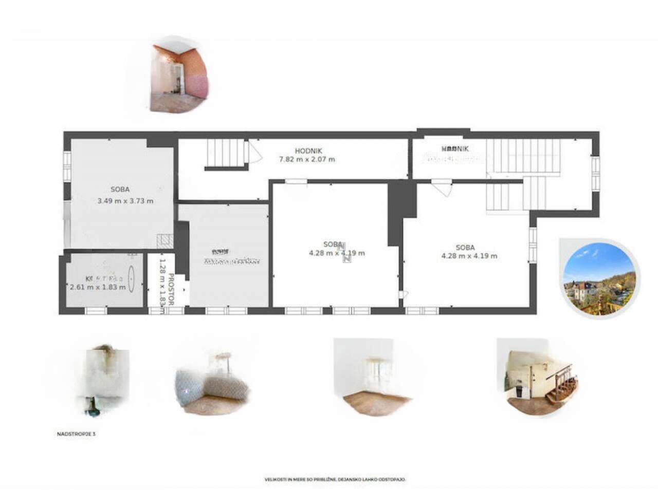 Дом удачно расположен рядом с городским центром, парком Тиволи и районом Рожник, предлагая восхитительный вид на городскую панораму, связывающую Рожна долину с центром Любляны. Все необходимые учреждения и услуги находятся в легкой пешей доступности: почта, банки, школы, детские сады, магазины и булочные. Наличие удобного доступа к автомагистралям и возможности уличной парковки делают эту недвижимость еще более привлекательной.