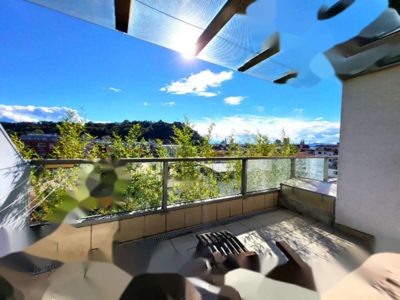 В сердце города, на пятом этаже здания, возведенного в 2005 году, располагается пентхаус площадью 170 м², откуда открывается захватывающий панорамный вид на замок и собор. Это жилье с просторными и светлыми комнатами, оформленное в современном стиле, обеспечивает комфорт и уют в течение всего дня.