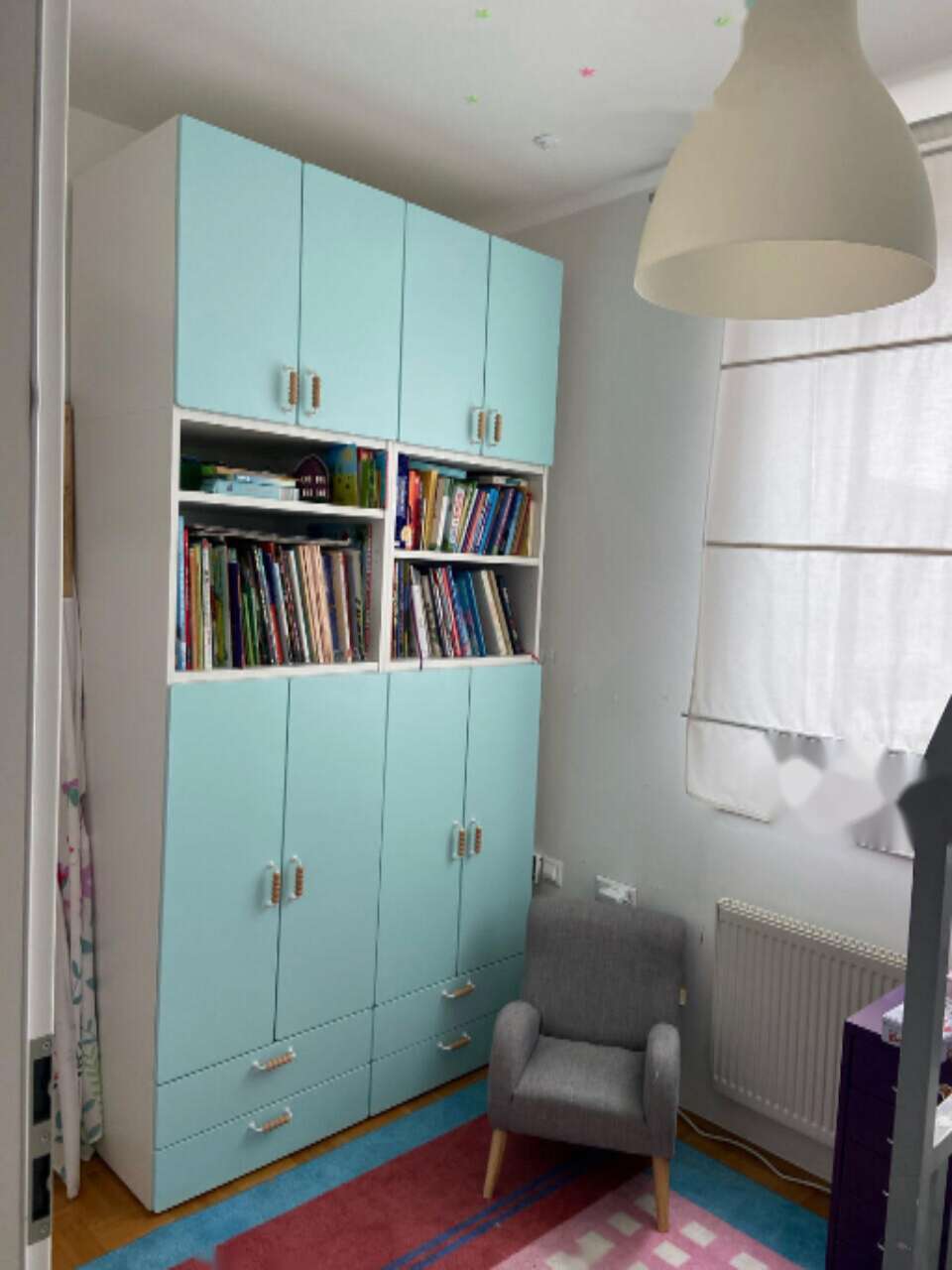Уже при входе вы попадёте в просторное помещение с высокими потолками (270 см) и выходом на балкон с южной стороны, откуда открывается вид на внутреннюю детскую площадку. Апартаменты полностью меблированы и оснащены современной техникой от таких брендов как Bosch, Faber и Gorenje.