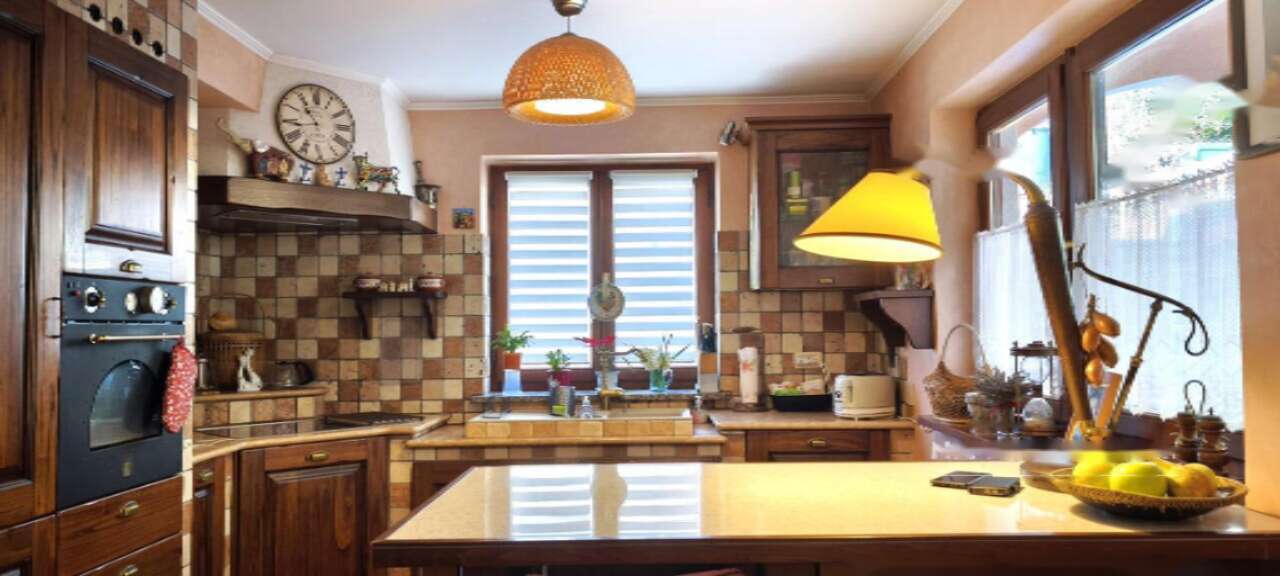 На территории в 483 м² размещены крытая парковка с зарядной станцией для электромобилей, летняя кухня с печью, а также ухоженный сад с фруктовыми и оливковыми деревьями, дополненный овощными грядками. Дом вмещает три уровня:
