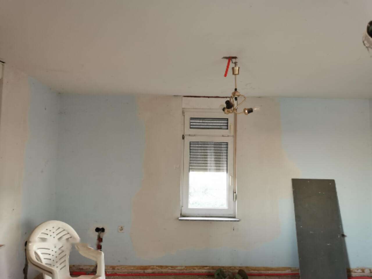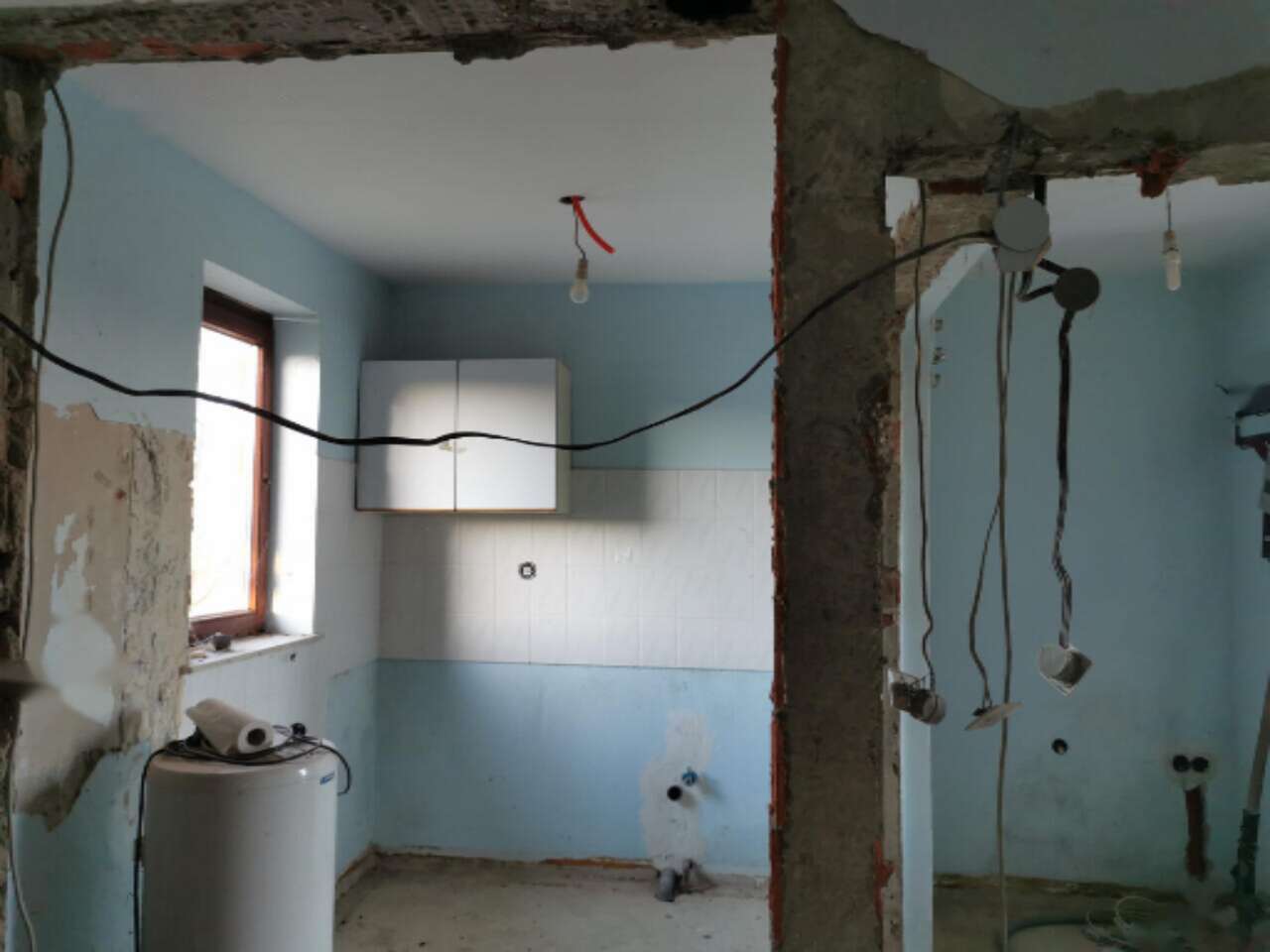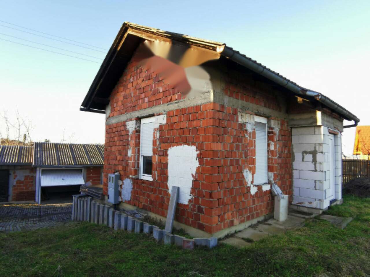 Планировка продумана таким образом, что прихожая ведет в просторную открытую зону, где находятся ванная, объединенная кухня с обеденной зоной и гостиная со спальней. Дом проходит ремонтные работы, окна в нем частично деревянные, частично пластиковые, установлены новые входные двери из ПВХ. Напольные покрытия отсутствуют, крыша покрыта волнистым материалом, фасад еще не завершен, отопление не предусмотрено. Электричество и вода подключены, дом имеет разрешение на строительство, однако адрес еще не присвоен.