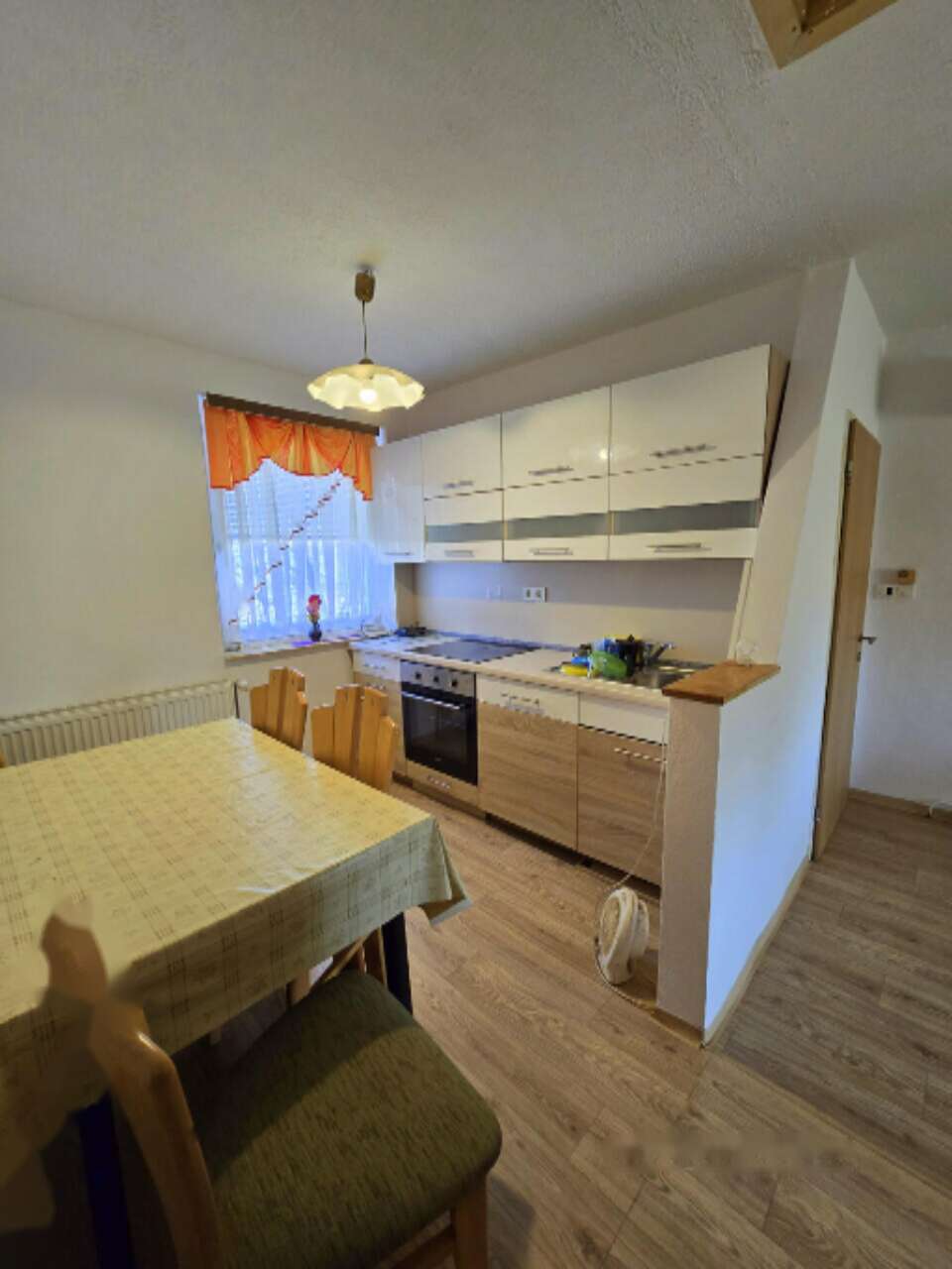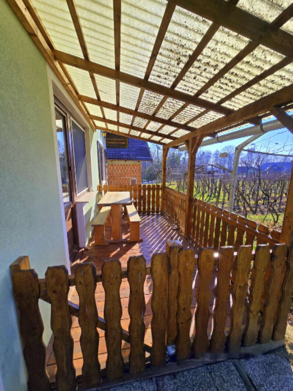 В подвале имеются два помещения: одно, где размещены котел, масляный резервуар (1000 л), водонагреватель и стиральная машина, а другое служит винным погребом. Отопление обеспечивается радиаторами через жидкотопливную печь. Окна, выполненные из ПВХ с жалюзи, были установлены в 2020 году. Крыша покрыта черепицей.