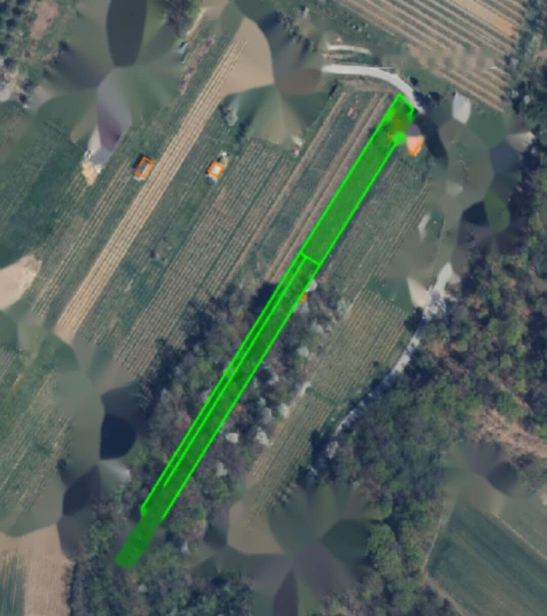 Земляной участок размером 4.363 м², из которых 755 м² заняты постройками, включает также сельскохозяйственные земли и лесные угодья. Участок немного склонен. Дом с террасой площадью 63,20 м² предлагает жилую зону в 29,70 м², подвал на 26,40 м² и террасу размером 7,10 м².