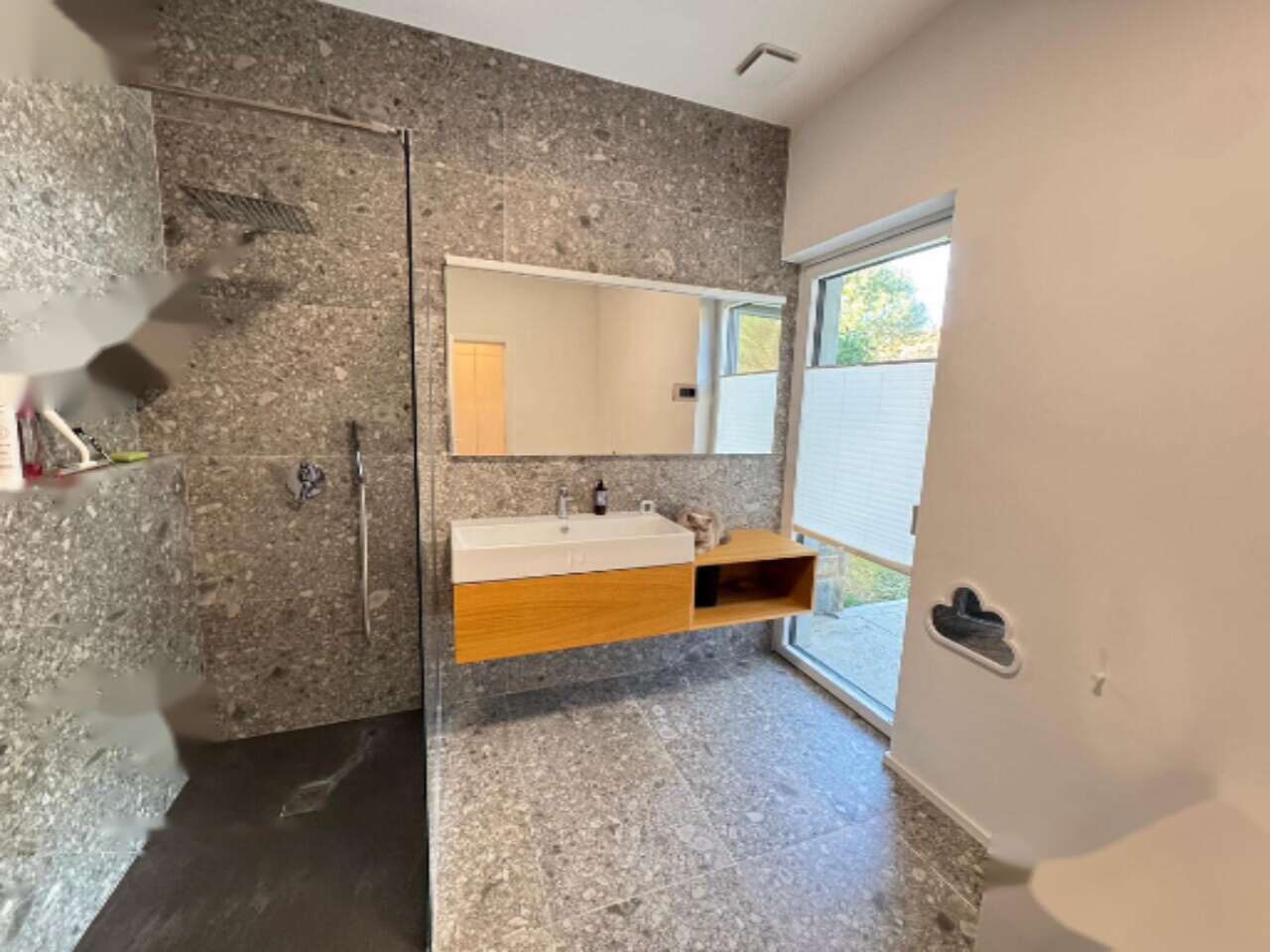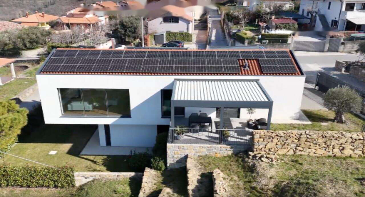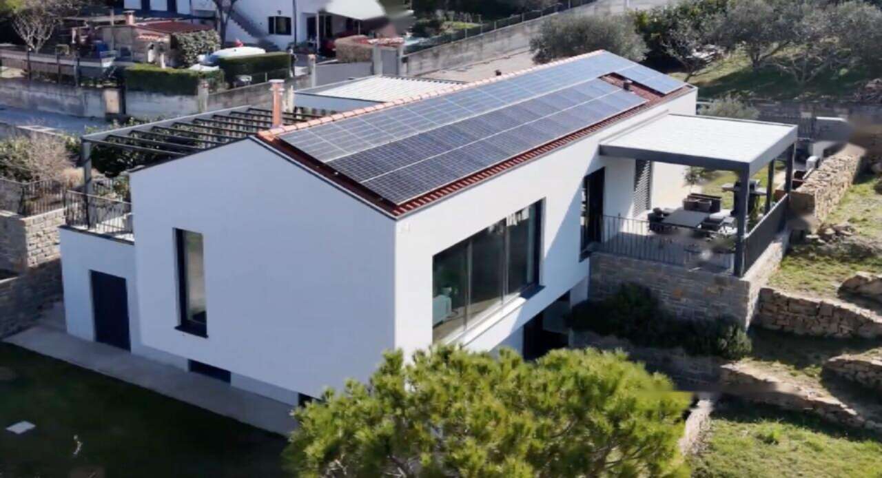 Гараж на 19,9 кв. м и три частных парковочных места предназначены для автомобилей. В доме реализована система электрического отопления с тепловым насосом и теплым полом. Противовзломные двери и солнечная электростанция завершают его современный облик.