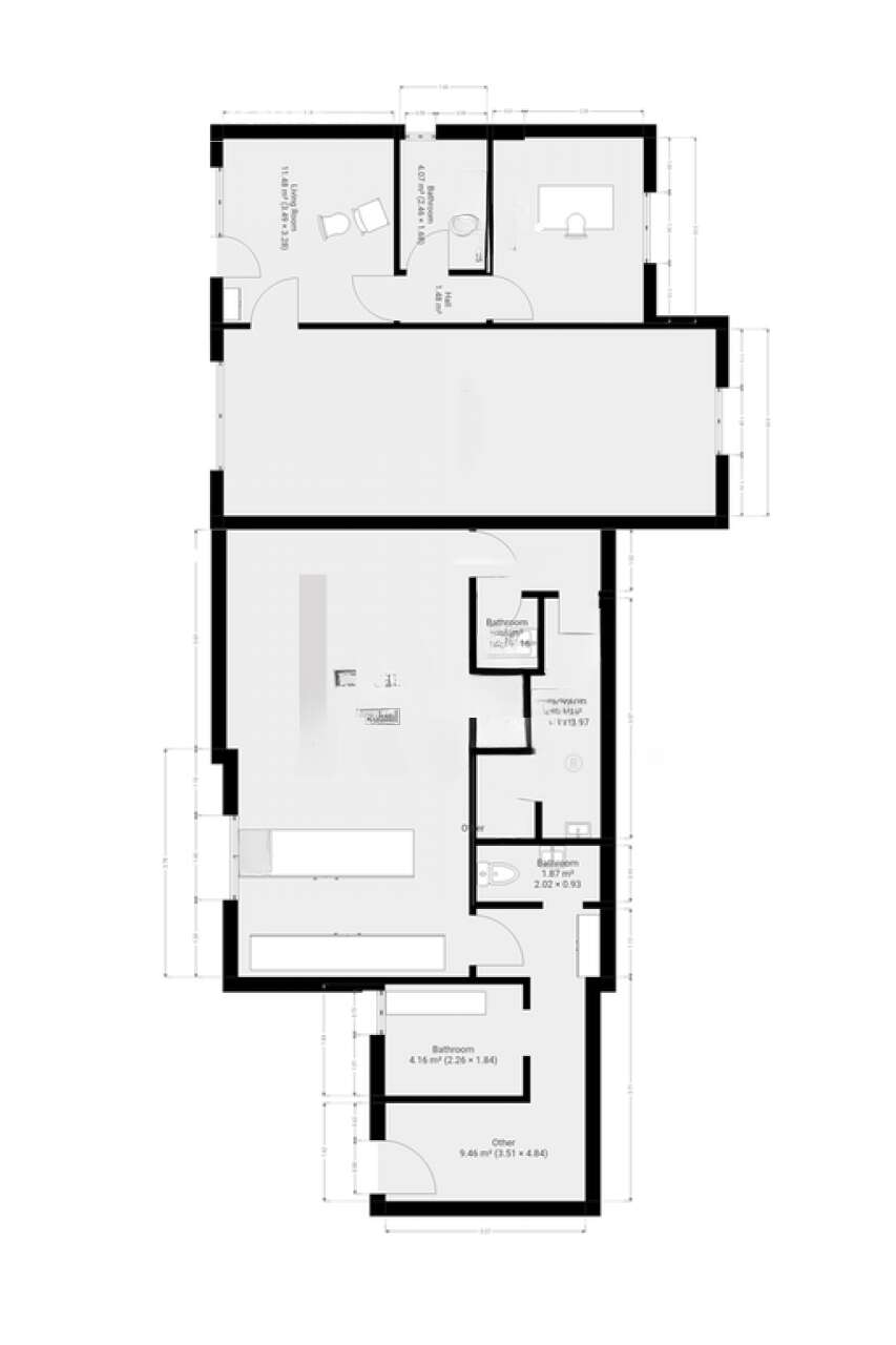 - Вторая единица представляет собой двухкомнатную квартиру площадью 57,43 м², прежде служившую кафе.