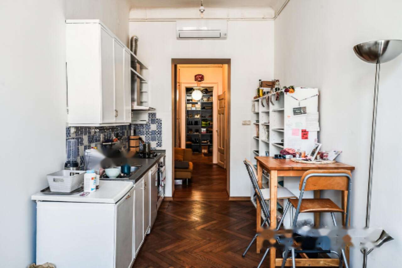 Объект находится на втором этаже здания, не оснащенного лифтом, и частично обновленный в 2016 году. Внутреннее пространство включает просторный коридор, уютную кухню с обеденной зоной, обширную гостиную, две спальни и две ванные комнаты. Высокие потолки и оригинальный паркет создают атмосферу старины, добавляя помещению тепло и уют.