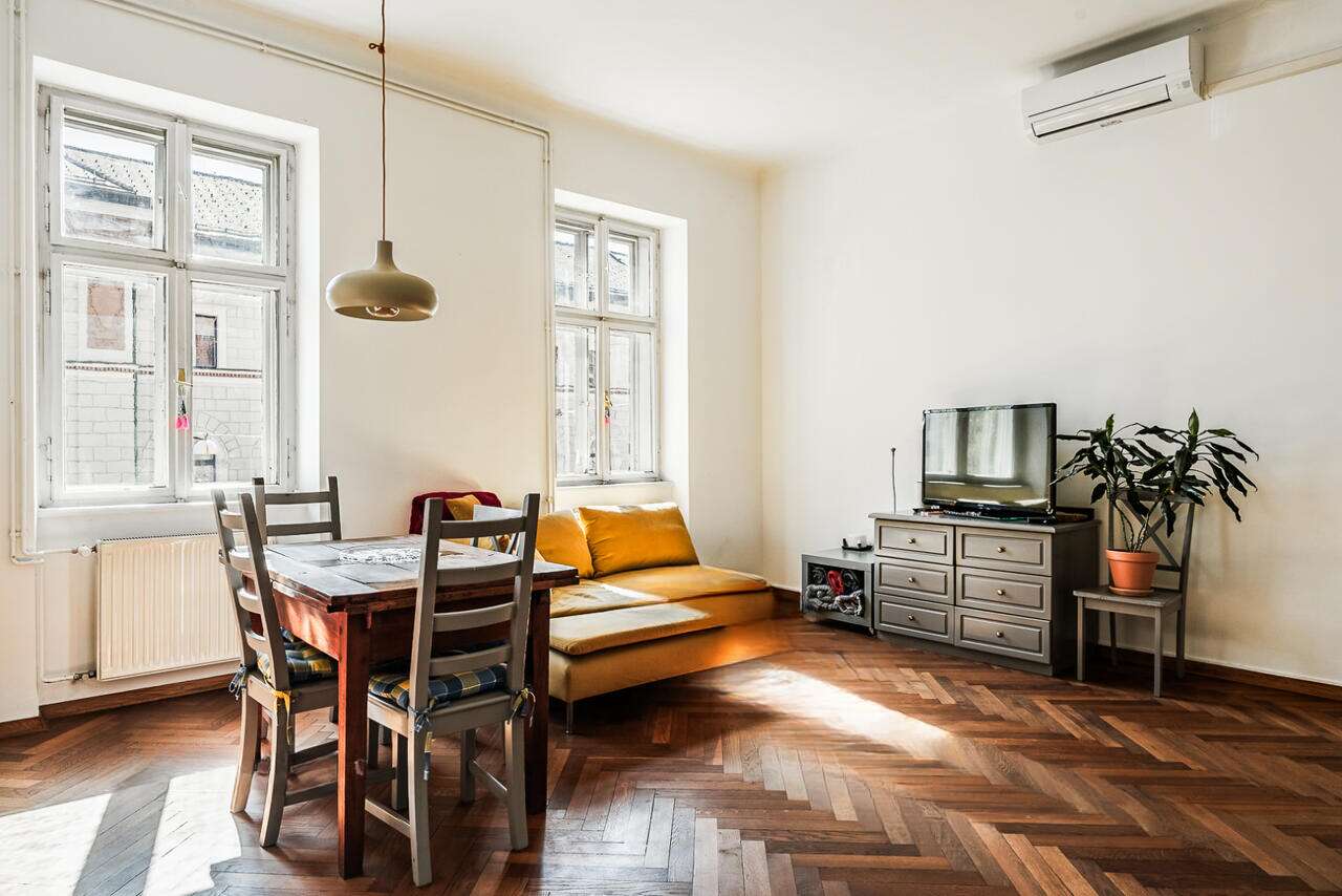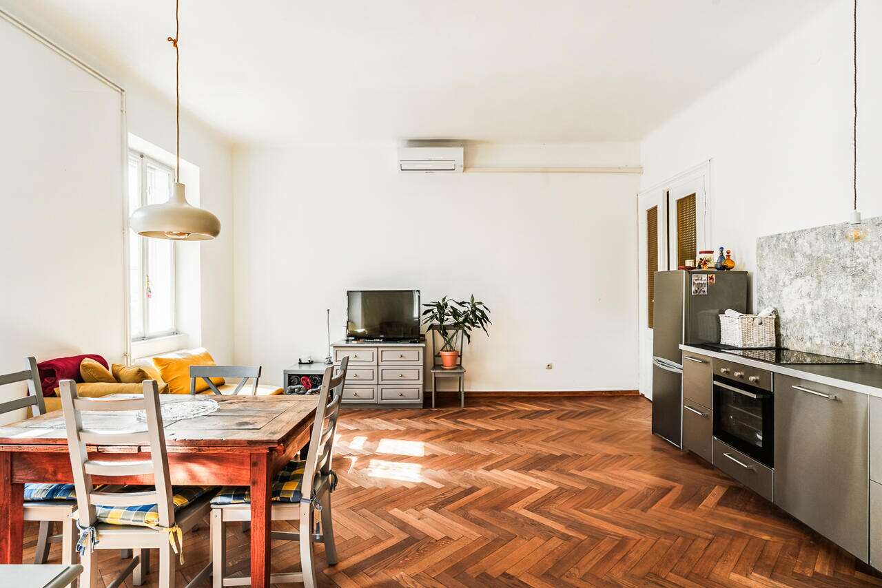 На улице Прешернова в сердце Любляны предлагают уникальную возможность покупки исторических апартаментов площадью 105,5 м². Квартира располагается на втором этаже здания без лифта и в 2016 году была частично обновлена, сохраняя аутентичные архитектурные детали.