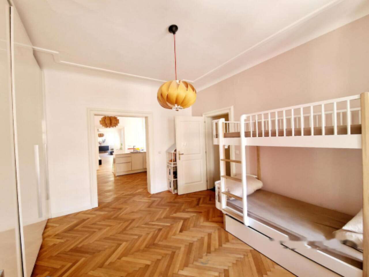 В квартире предусмотрены: просторный холл при входе, две спальни, гостиная, кухня и ванная комната. Жилая площадь составляет около 110 м², а в подвале имеются дополнительные 10 м² полезных помещений. Высокие потолки и обширные окна обеспечивают приятную атмосферу и отличное освещение.