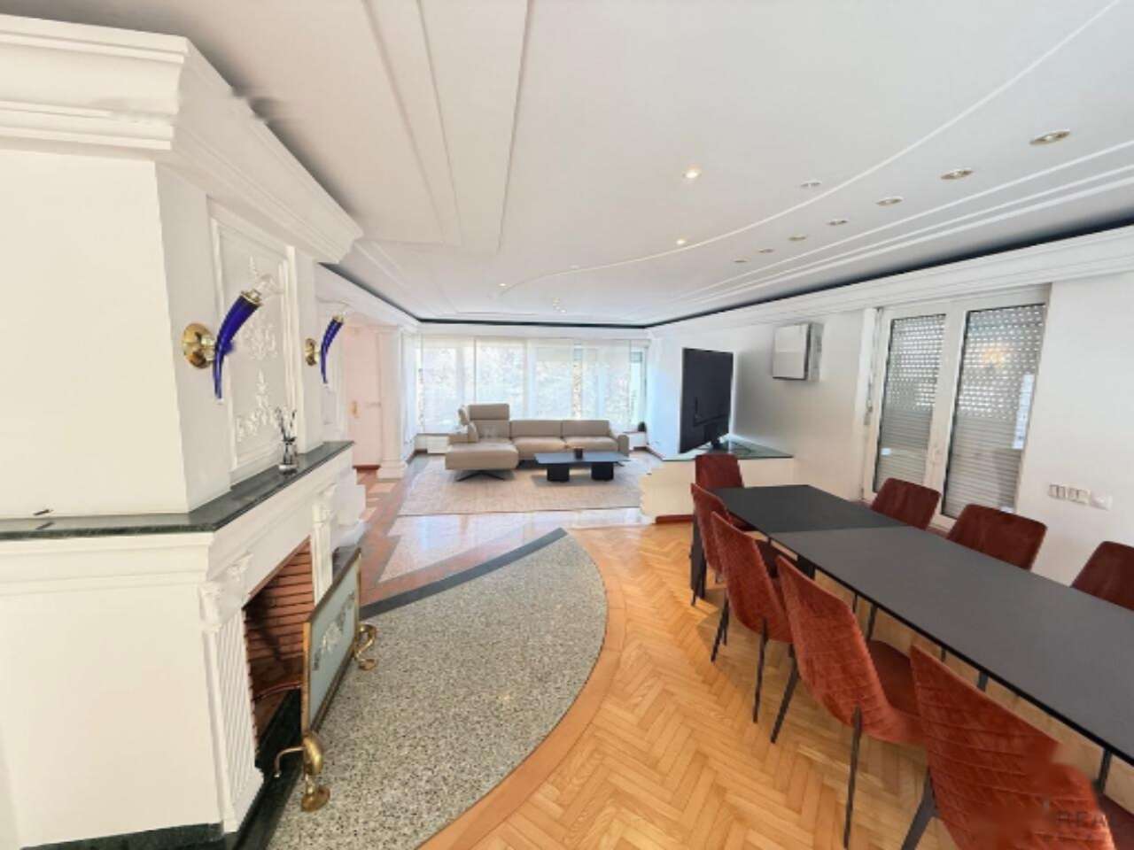 Второй этаж радует спальней с ванной и гардеробом, а также кухней, объединённой со столовой и гостиной с камином, откуда открывается выход в сад с бассейном и павильоном. Мансарда включает две спальни, каждая оснащена собственной ванной, гардеробом и балконом.