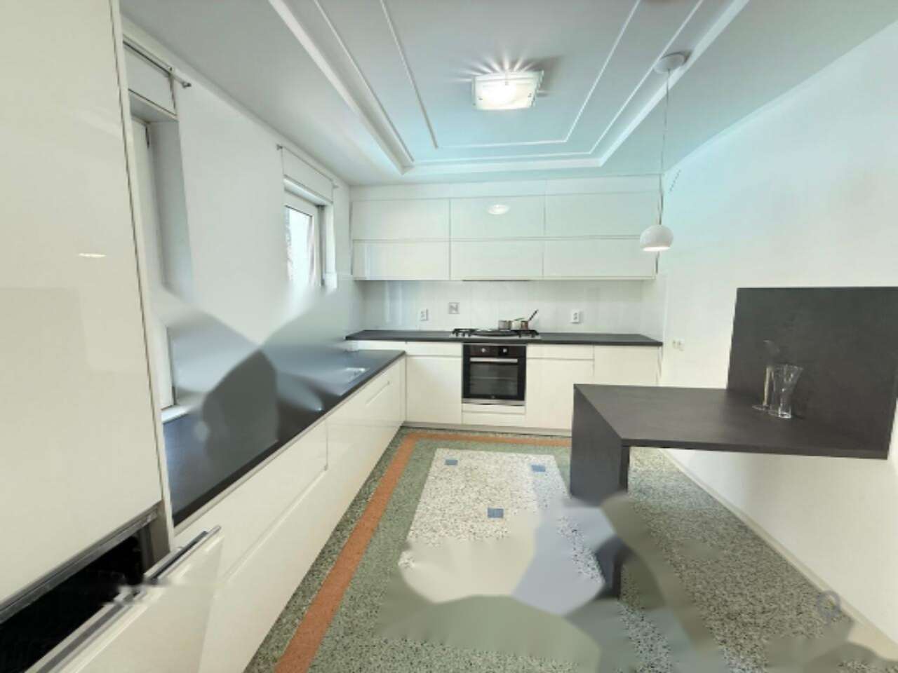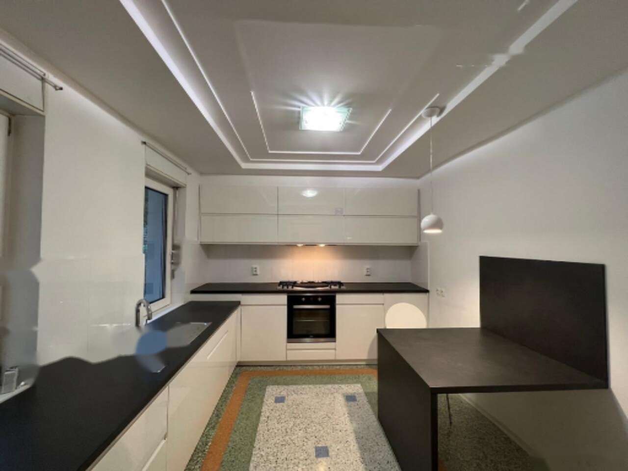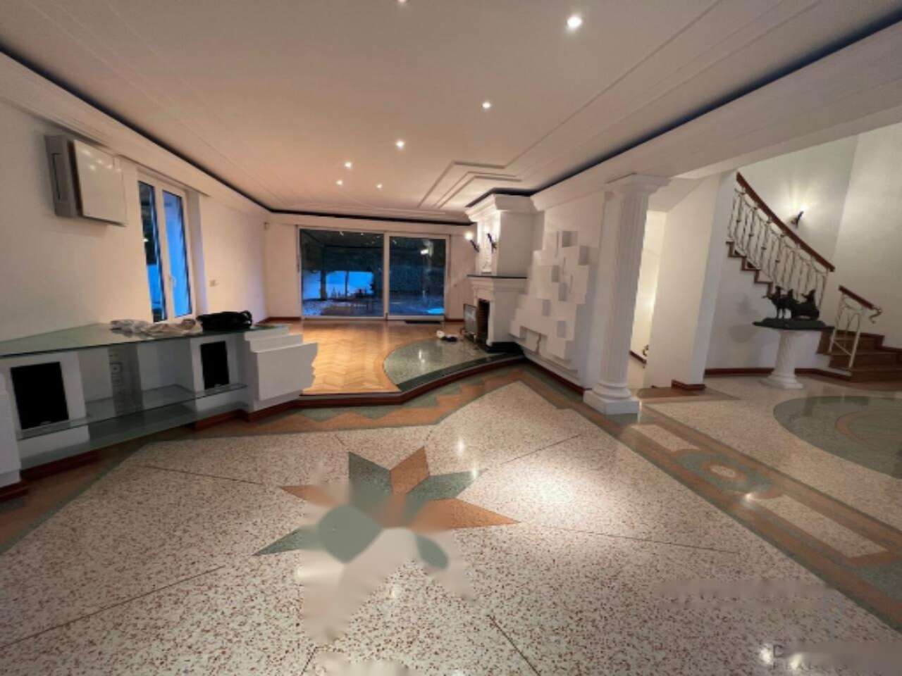 Частичная меблировка дополняет общий стиль дома. Кухня обновлена в 2018 году. Полы выполнены из терраццо с неповторимыми цветами и узорами, гармонирующими с потолочным декором. Заказные ступени из Вероны и колонны из Милана дополняют антураж. В интерьере используется муранское стекло для освещения и ручек дверей. Окна от Finstral изготовлены из ПВХ с внутренним алюминиевым слоем. Крыша накрыта теголой, а фасад был модернизирован с особой изоляцией в 2020 году. Отопление обеспечивается газовым котлом с подогревом полов, в комнатах с паркетом установлены радиаторы. Гостиную можно дополнительно обогревать камином.