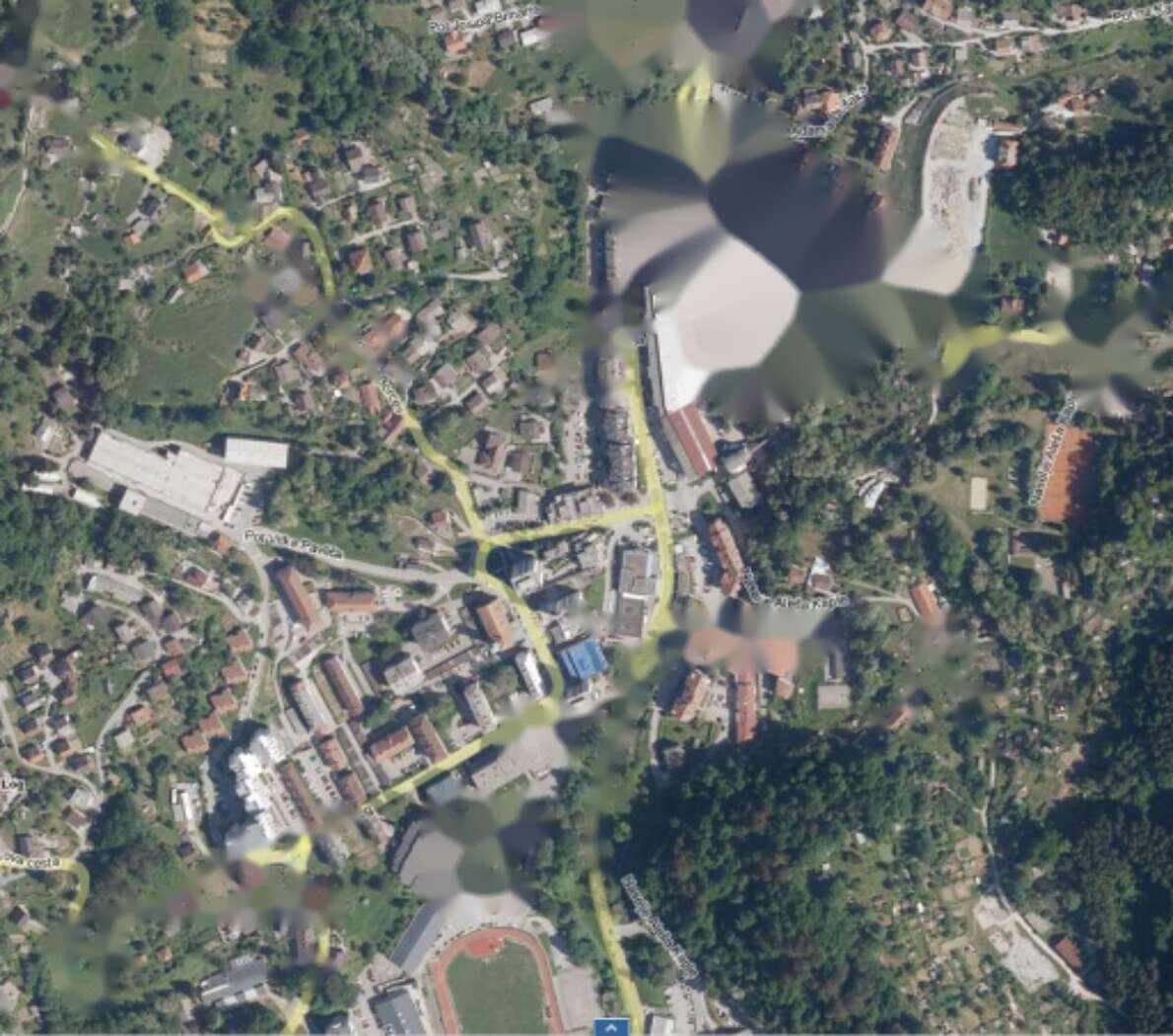 Участок удобно расположен в 400 метрах от центра Храстника, предлагая лёгкий доступ к городской инфраструктуре, включая детский сад в 300 метрах. Это идеальный выбор для тех, кто ценит уединение в сочетании с городской доступностью.