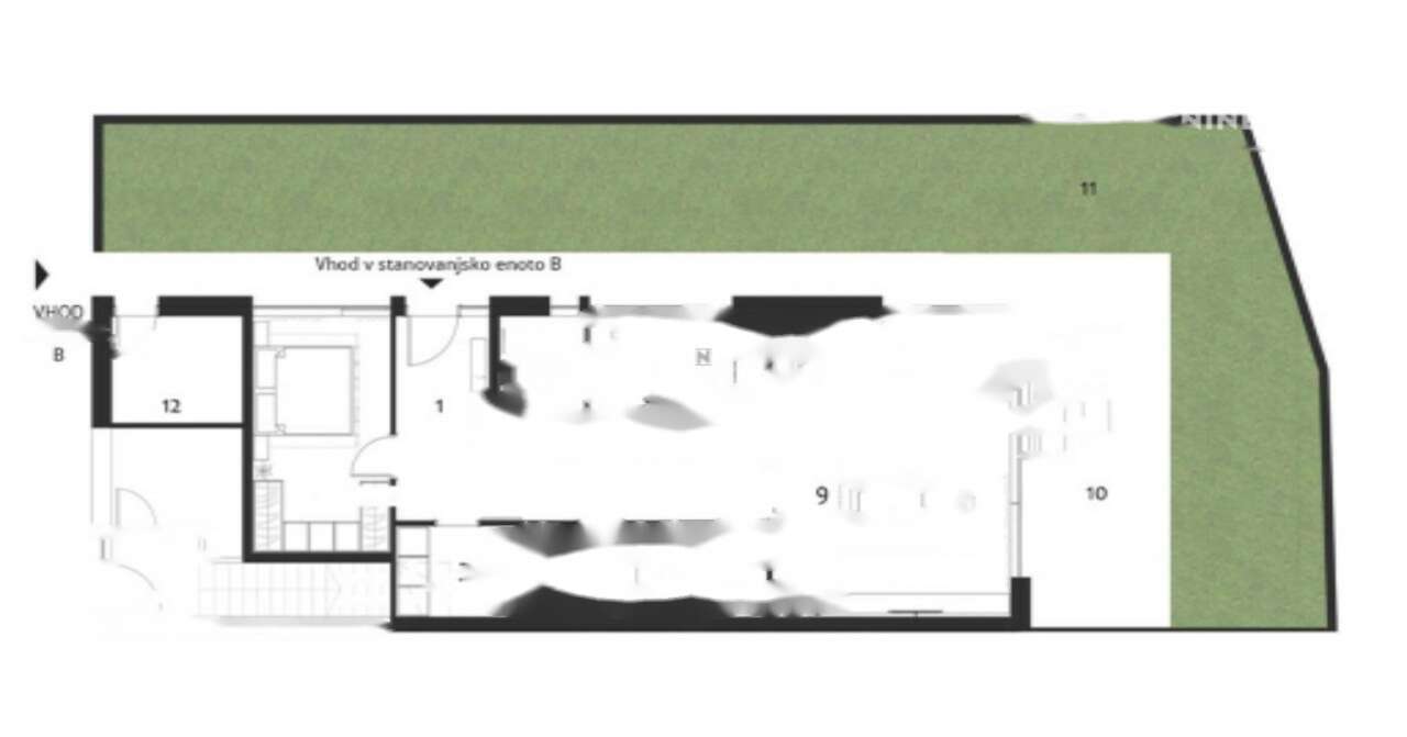 Трехкомнатная квартира с общей площадью 91,8 м² (с жилой площадью 76,1 м² и кладовой 15,7 м²) находится на первом этаже. У нее также имеется 129 м² внешних площадей с террасой и садом. Каждое жилье оборудовано отдельным входом, местом для хранения велосипедов и двумя парковочными местами (одно из которых подготовлено для зарядки электромобилей).