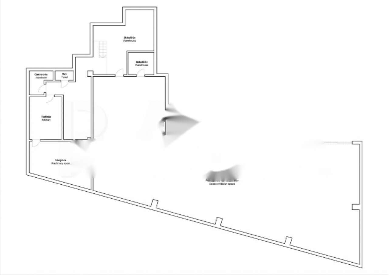 Архитектурные решения объекта включают в себя большие выставочные окна и панорамный вид на реку Любляницу. Внутреннее пространство включает в себя выставочный и торговый залы, гардеробные, санитарные помещения, помещение для чайной кухни и склад. Существующая гипсокартонная перегородка может быть полностью демонтирована в соответствии с требованиями арендатора.