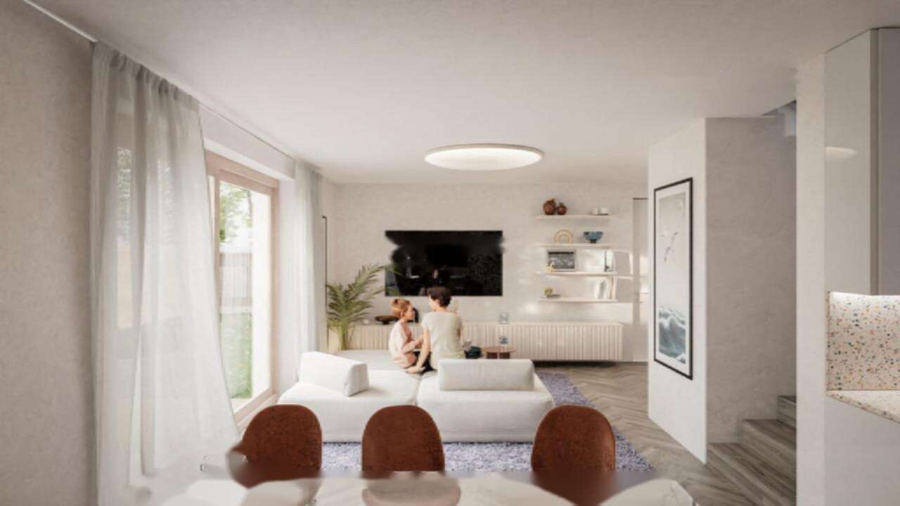 Дом находится на участке площадью 190,2 м² и продается в пятой строительной фазе «под ключ». Из первого этажа есть выход на террасу и ухоженный сад, где можно насладиться свежим воздухом и красивыми видами в окружении природы.