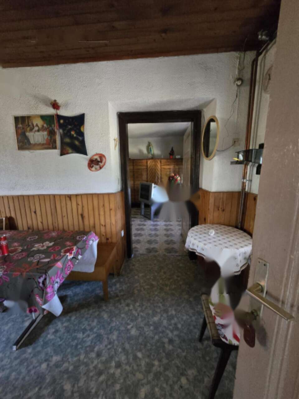 Дом площадью 90 м² располагается на просторной территории размера 4075 м². Постройка из камня со встроенным подвалом и первым этажом. Светлый и просторный интерьер тщательно спланирован, включающий прихожую, кухню-столовую, кладовку и три комнаты, из которых две соединены между собой. Отопление комбинированное: радиаторы работают от электрического котла с возможностью использования дров и угля.