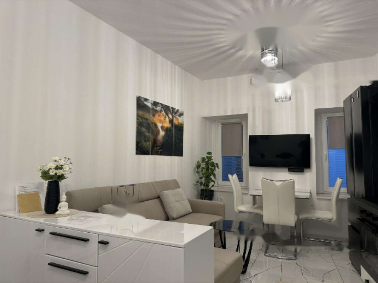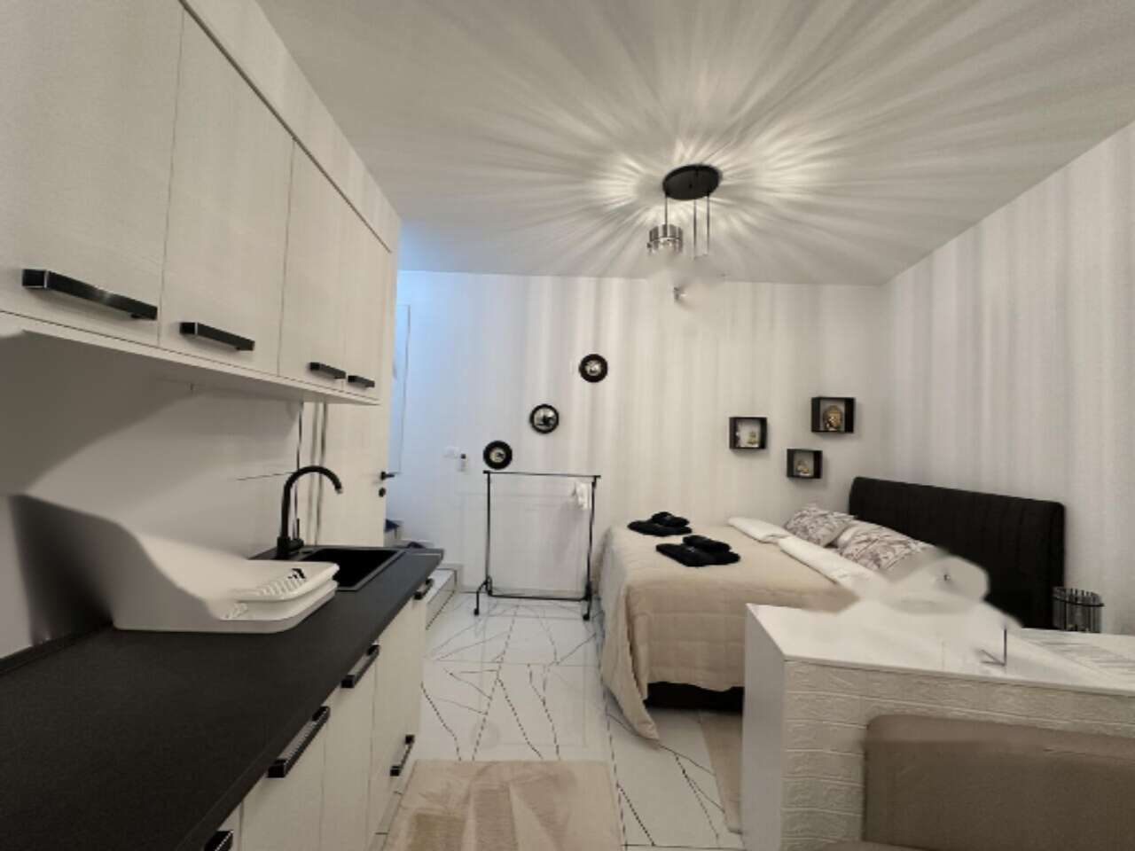 Удобное расположение квартиры обеспечено близостью к важным инфраструктурным объектам и местам отдыха. Рядом находятся детский сад и школа, что делает жилплощадь подходящей для семейных пар. Неподалêку находится центр города с множеством ресторанов и зон для активного отдыха, где можно насладиться природными красотами и провести свободное время с пользой.