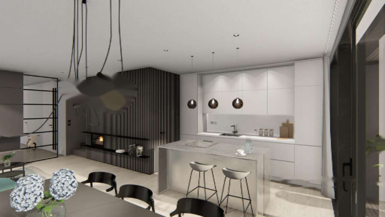 Технические характеристики дома поражают: использование блоков ISOSPAN и теплоизоляции EPS в 22 см обеспечивает отличную энергоэффективность. Окна из ПВХ с тройным стеклопакетом и автоматическими жалюзи подготовлены для москитных сеток. Входная дверь выполнена из алюминия и оснащена современным отпиранием по отпечатку пальца. Отопление осуществляется экономичным тепловым насосом. Все коммуникации и подключения телекоммуникаций уже проведены. Также есть подготовка для установки навесов и основная отделка территории.