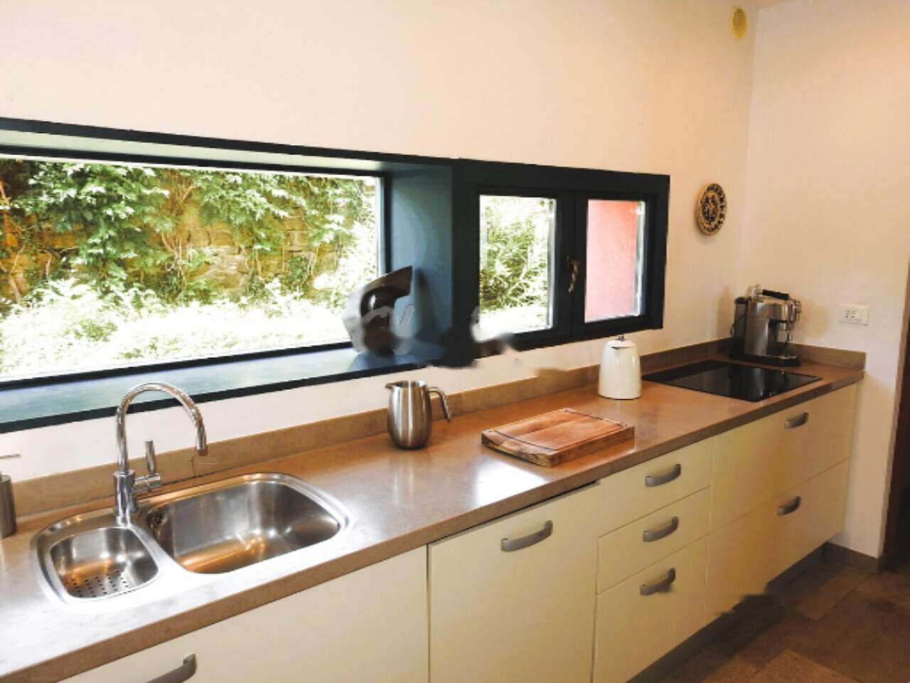 Дом снабжён современными удобствами: тут есть напольное отопление, кондиционер, солнечная электростанция и оптический интернет. ⚡ В распоряжении владельцев — 8 собственных парковочных мест, обширный сад и терраса. Планировка и расположение делают его подходящим как для семей, так и старшего поколения; также здесь приветствуются домашние питомцы.