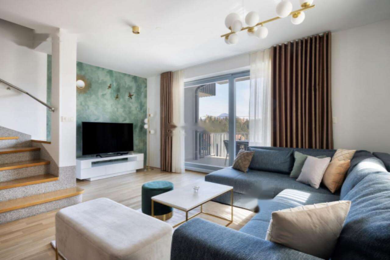 На продажу выставлена уникальная четырехкомнатная квартира в престижном жилом комплексе с захватывающим видом на озеро Блей. Просторное жилье площадью 153 м² распределено на четыре уровня и включает функциональный земельный участок площадью 62 м², а также два парковочных места.