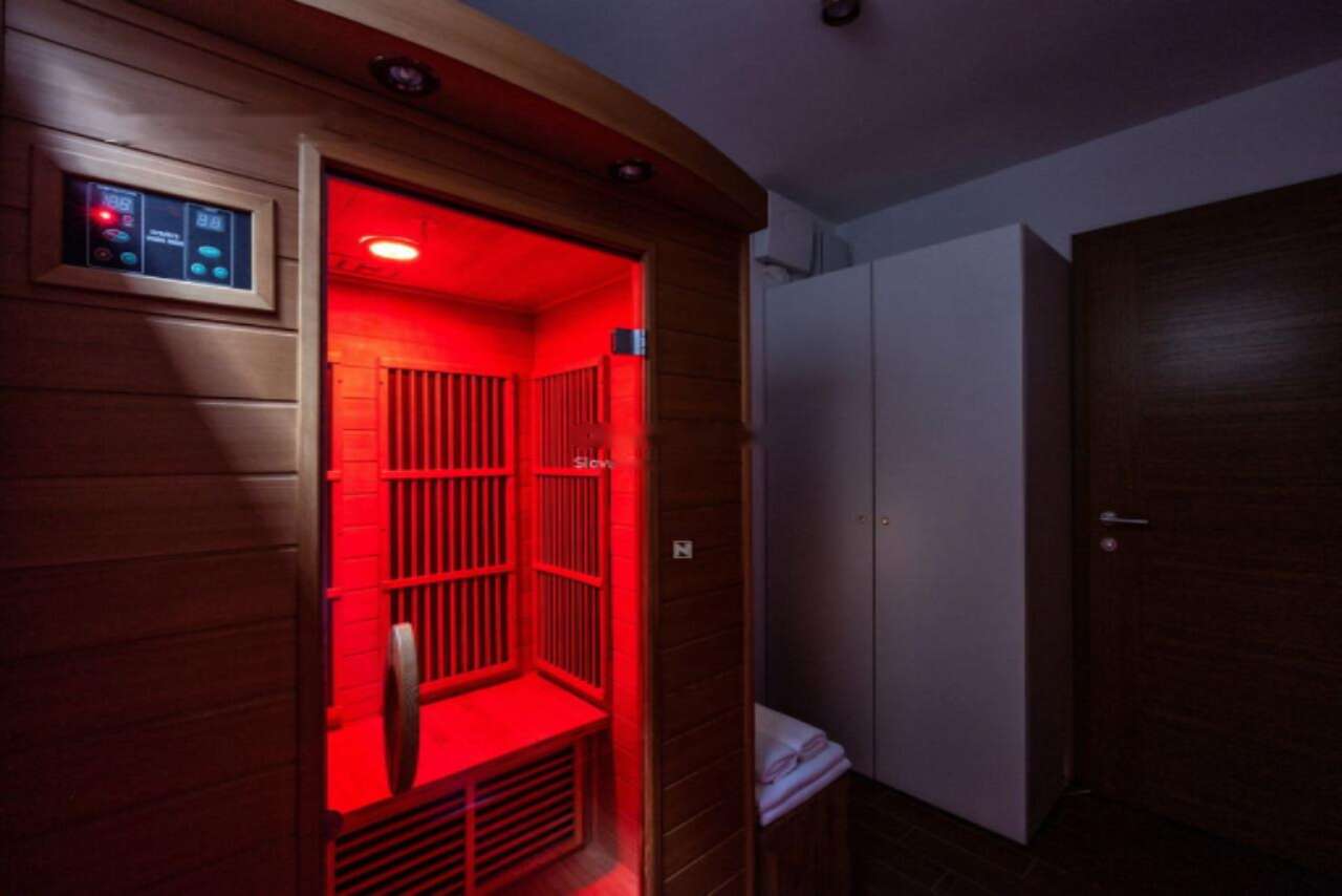 Первый уровень квартиры может похвастаться студио с двуспальной кроватью, инфракрасной сауной, стильной ванной комнатой с большой душевой кабиной и стиральной машиной, а также широкой террасой.