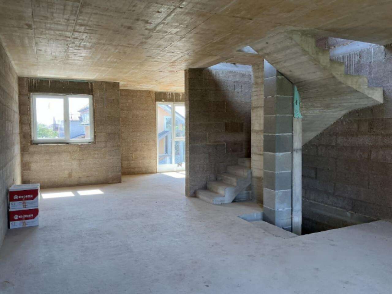 Продается новый современный дом с террасой, находящийся в районе Вижмарье. Строительство завершено в 2025 году, объект располагается на участке размером 178 м². Дом имеет три уровня: первый и второй этажи, а также мансарду, с общей площадью 194,3 м² и жилой площадью 164,5 м².