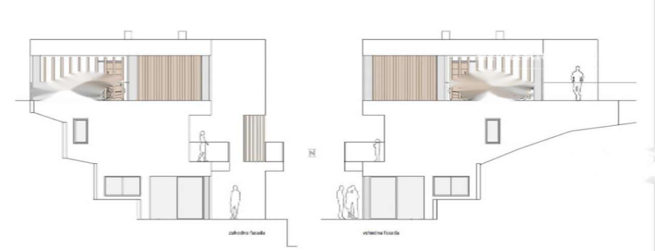 Дневная зона дома ориентирована на юг, а подъезд к строению осуществляется с северной стороны. Удобное местоположение обеспечивает быстрый доступ к магазинам (1,2 км), шоссе (1 км), а также общественному транспорту (400 м до автобусной остановки и 1,4 км до остановки ЛПП 6B).