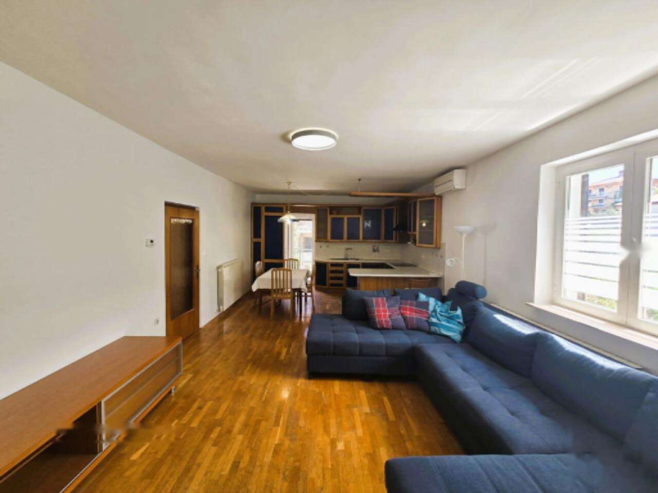 К квартире прилагается участок площадью 81 м², оформленный в виде зеленой зоны с черешневым и инжирным деревьями, каменным столом и местом для барбекю. Для машины предусмотрены два парковочных места.