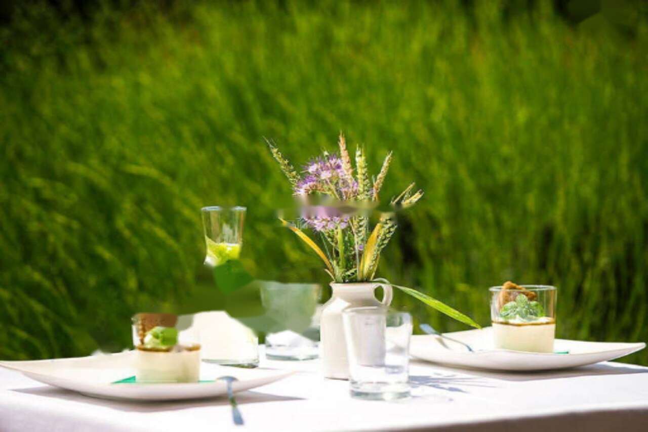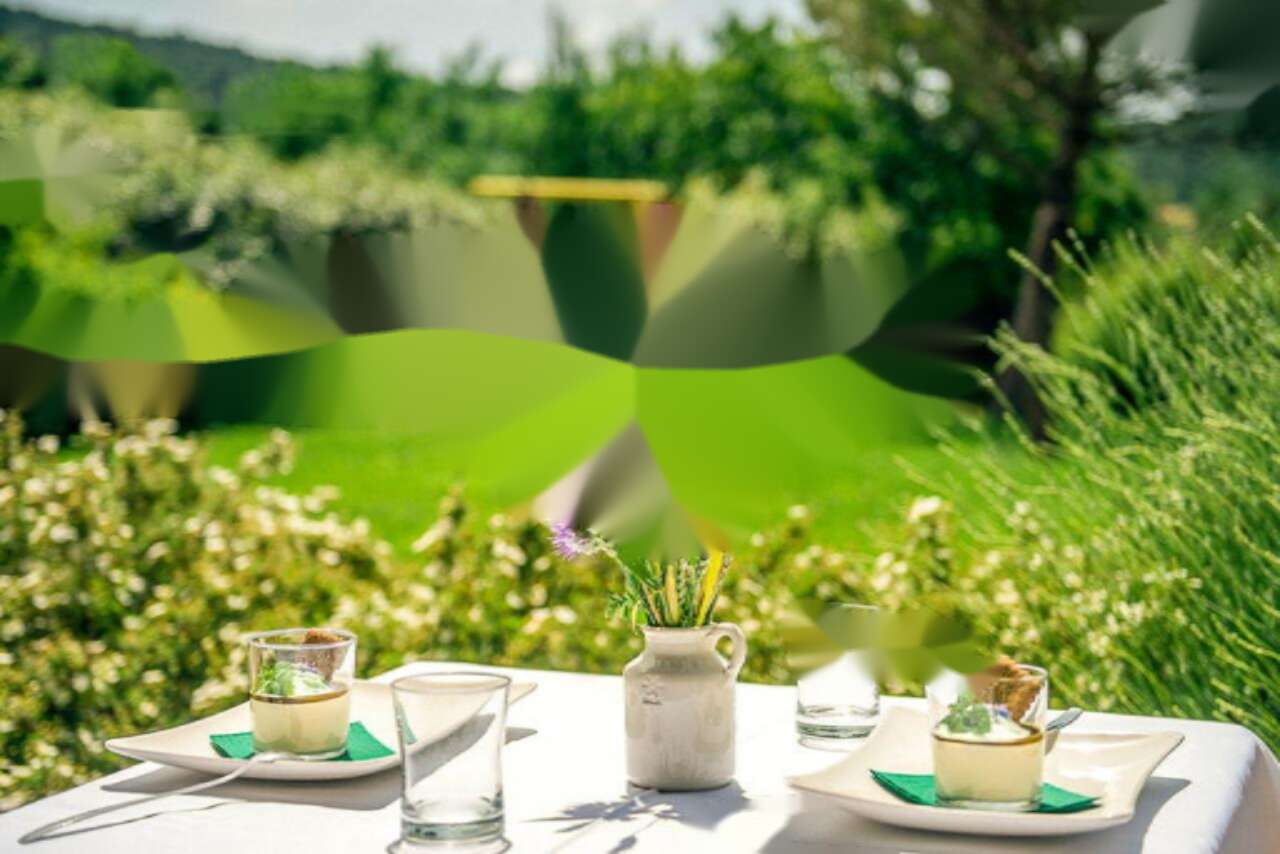 На первом этаже располагаются отлично организованные ресторанные зоны, включающие три отдельных зала (рассчитанных на 72 человека), с выходом на обширную уличную террасу (вместимостью 60 мест) и современную кухню, оснащенную профессиональным оборудованием. Это заведение славится сезонными блюдами из местных продуктов и привлекает большое количество гостей как из-за границы, так и из окрестностей.