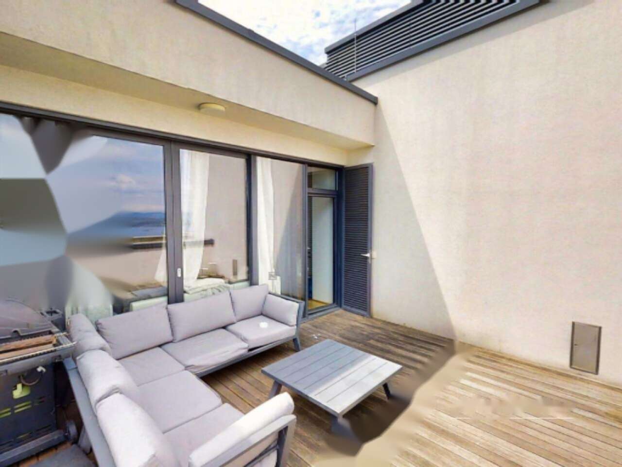 Построенная в 2010 году, квартира занимает второй и заключительный этаж здания с лифтом и имеет площадь 126 м². Жилая площадь составляет 89,8 м². В дополнение к этому, есть просторная терраса площадью 31,1 м² и подвал размером 5,1 м². Внутри квартиры грамотно располагаются: прихожая, две ванные комнаты, две компактные спальни с выходом на террасу, а также кухня и гостиная с зоной для обеда, откуда также есть выход на большую террасу. Все помещения полностью обставлены для комфортного проживания.
