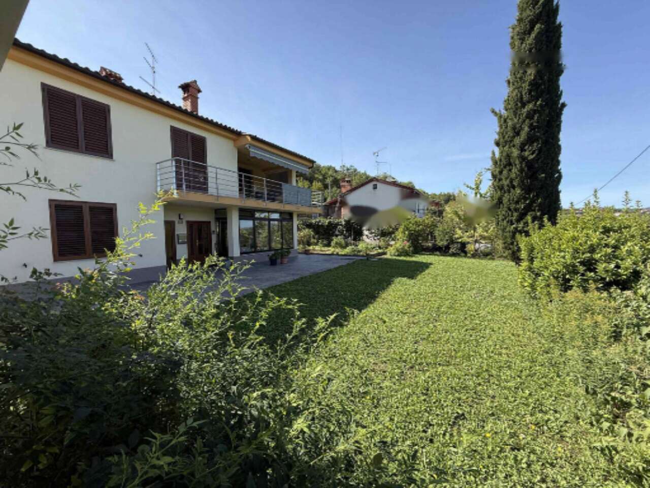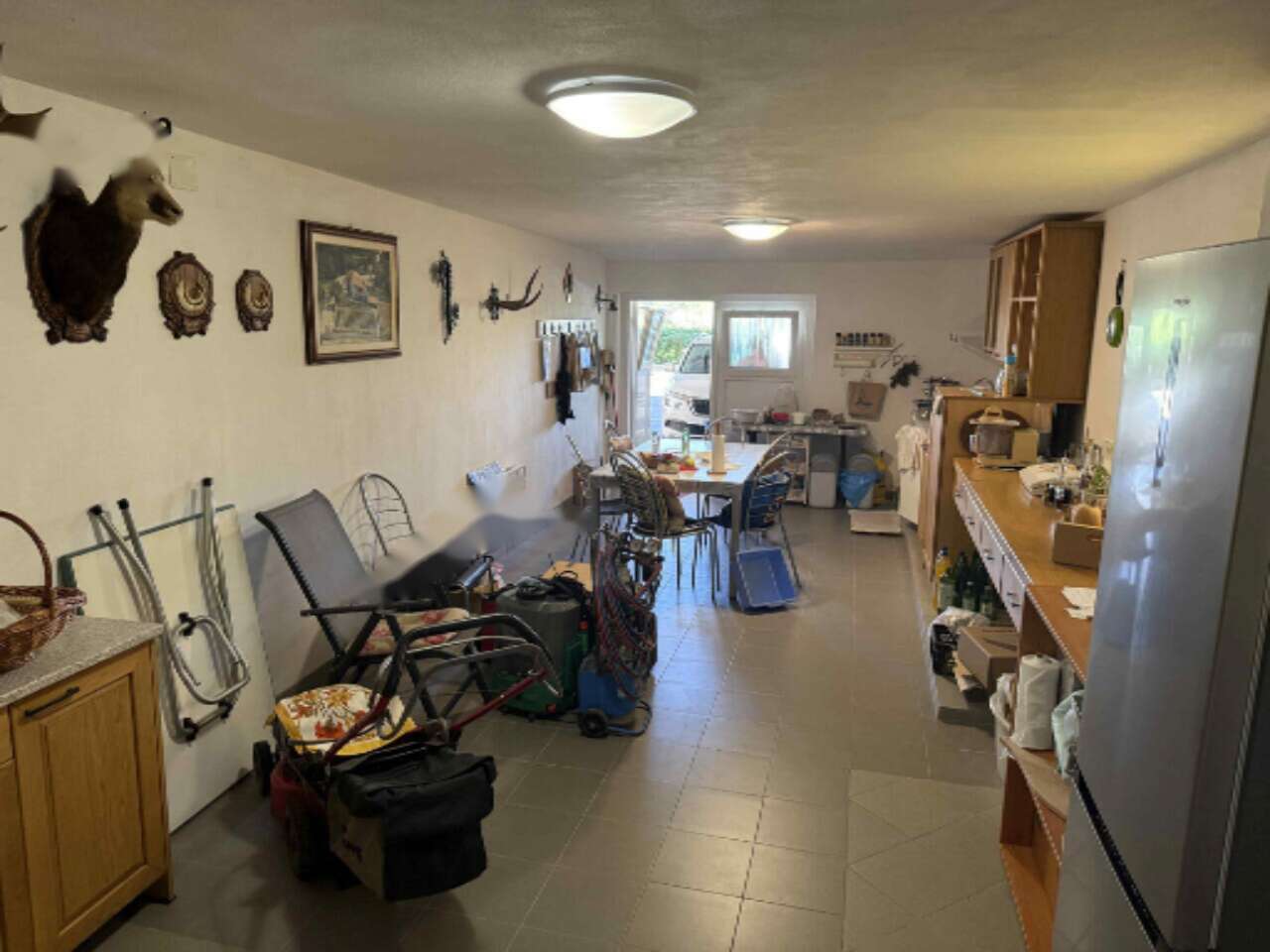 Для владельцев предусмотрены три крытых парковочных места, гараж, превращенный в летнюю кухню, и сопредельная кладовая, а также небольшой склад с внешним санузлом и душем. Обширный участок площадью 900 м² включает половину двора с зелеными лужайками и небольшим садиком, где можно выращивать овощи и зелень.