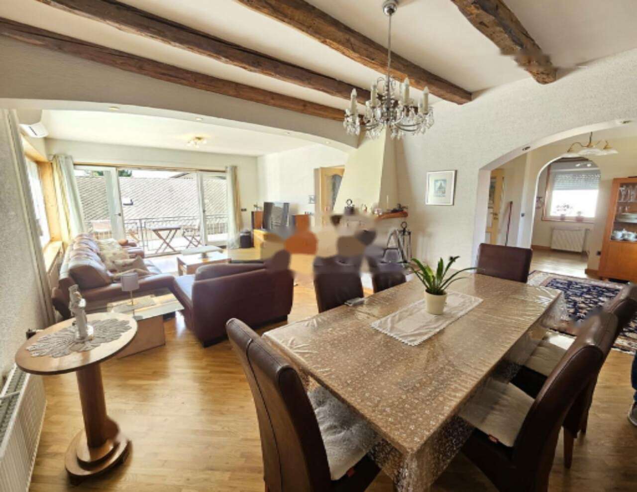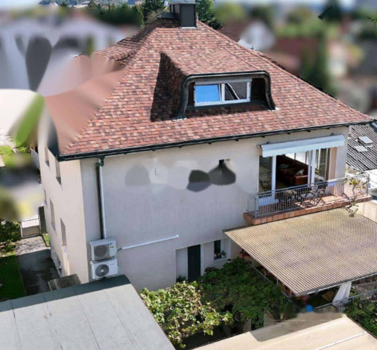 Дом состоит из нескольких уровней: подвал, первый этаж, второй этаж и мансарда. В подвале вы найдёте спальню, ванную комнату, гостиную, техническую комнату и гараж. На первом этаже, возвышаясь над землёй, находится современная 3-комнатная квартира с террасой, выходящей на запад, что обеспечивает оптимальное естественное освещение. Второй этаж и мансарда также занимают 3-комнатное жильё. Всего в доме расположено пять спален. Дополнительно на территории есть вспомогательное строение площадью 153,8 м², которое можно использовать как мастерскую или большой гараж.