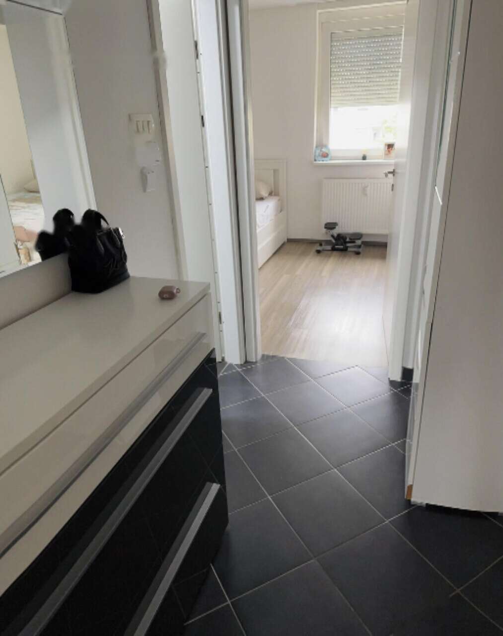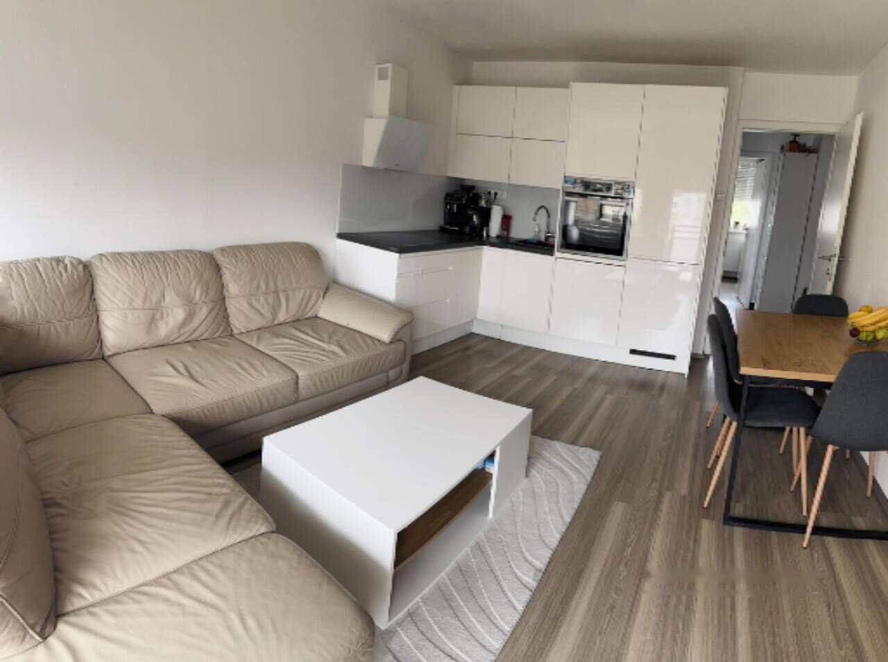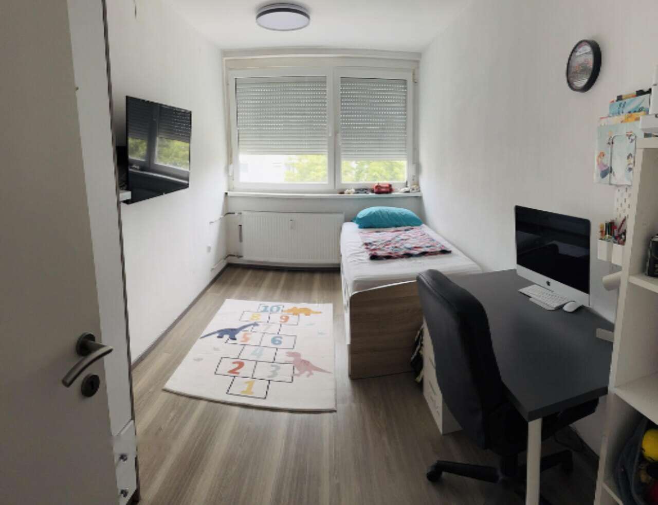 Внутри квартиры находятся объединенные гостиная и кухня, основная спальня, детская комната, ванная, прихожая и балкон. К дополнительным удобствам относятся отдельные подсобное помещение для сушки белья и кладовая. Жильцы могут пользоваться общей велопарковкой ♂️.