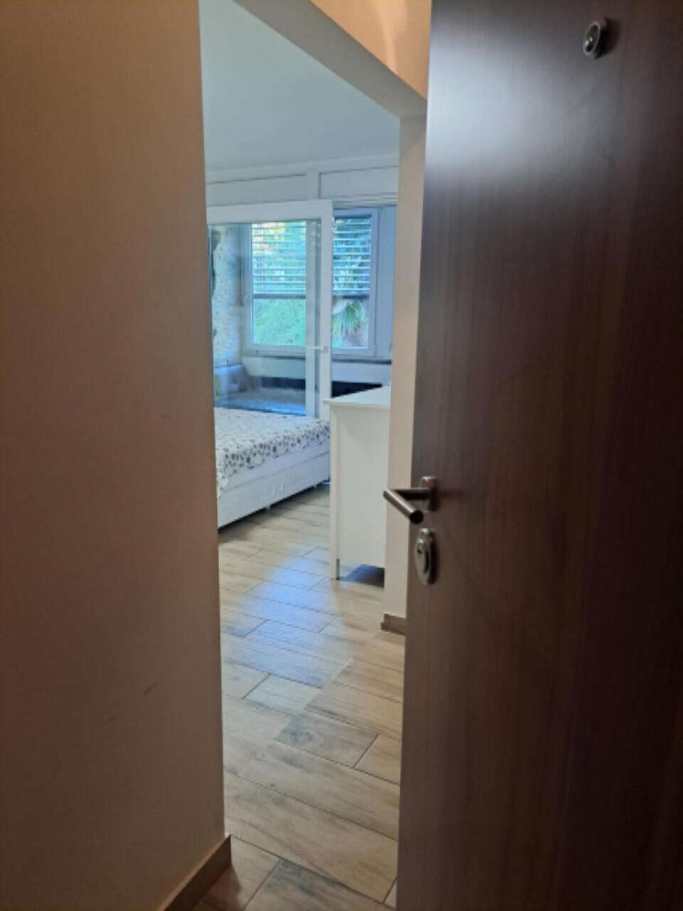 В центре Люции, Порторож, выставлена на продажу полностью отремонтированная однокомнатная квартира. Этот уютный вариант идеально подойдёт для пар, пожилых владельцев и любителей домашних животных. Квартира, располагающаяся на втором этаже пятиэтажного здания, предлагает комфорт проживания на площади 40 м².